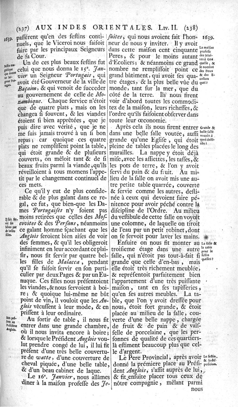 Voyages celebres & remarquables, faits de Perse aux Indes Orientales, par le sr. Jean-Albert de Mandelslo, gentilhomme des ambassadeurs du duc de Holstein en Moscovie & Perse. Contenant une description nouvelle & très-curieuse de l'Indostan, de l'empire du Grand-Mogol, des îles & presqu'îles de l'Orient, des royaumes de Siam, du Japon, de la Chine, du Congo, &c. Où l'on trouve la situation exacte de tous ces pays & etats ; & où l'on rapporte assez au long le naturel, les moeurs, & les coutumes de leurs habitans; leur gouvernement politique & ecclesiastique; les raretez qui se rencontrent dans ces pays; & les ceremonies qu'on y observe. Mis en ordre & publiez, après la mort de l'illustre voyageur, par le sr. Adam Olearius... Traduits de l'original par le sr. A. De Wicquefort ... Divisez en deux parties. Nouvelle edition revûe & corrigée exactement, augmentée considerablement, tant dans le corps de l'ouvrage qu'aux marginales, & surpassant en bonté & en beauté les précedentes editions. On y a encore ajouté des cartes géographiques, des représentations des villes, & autres taille-douces très-belles & très-exactes. On y trouve à la fin une Table fort ample & fort exacte. Tome premier [-second].