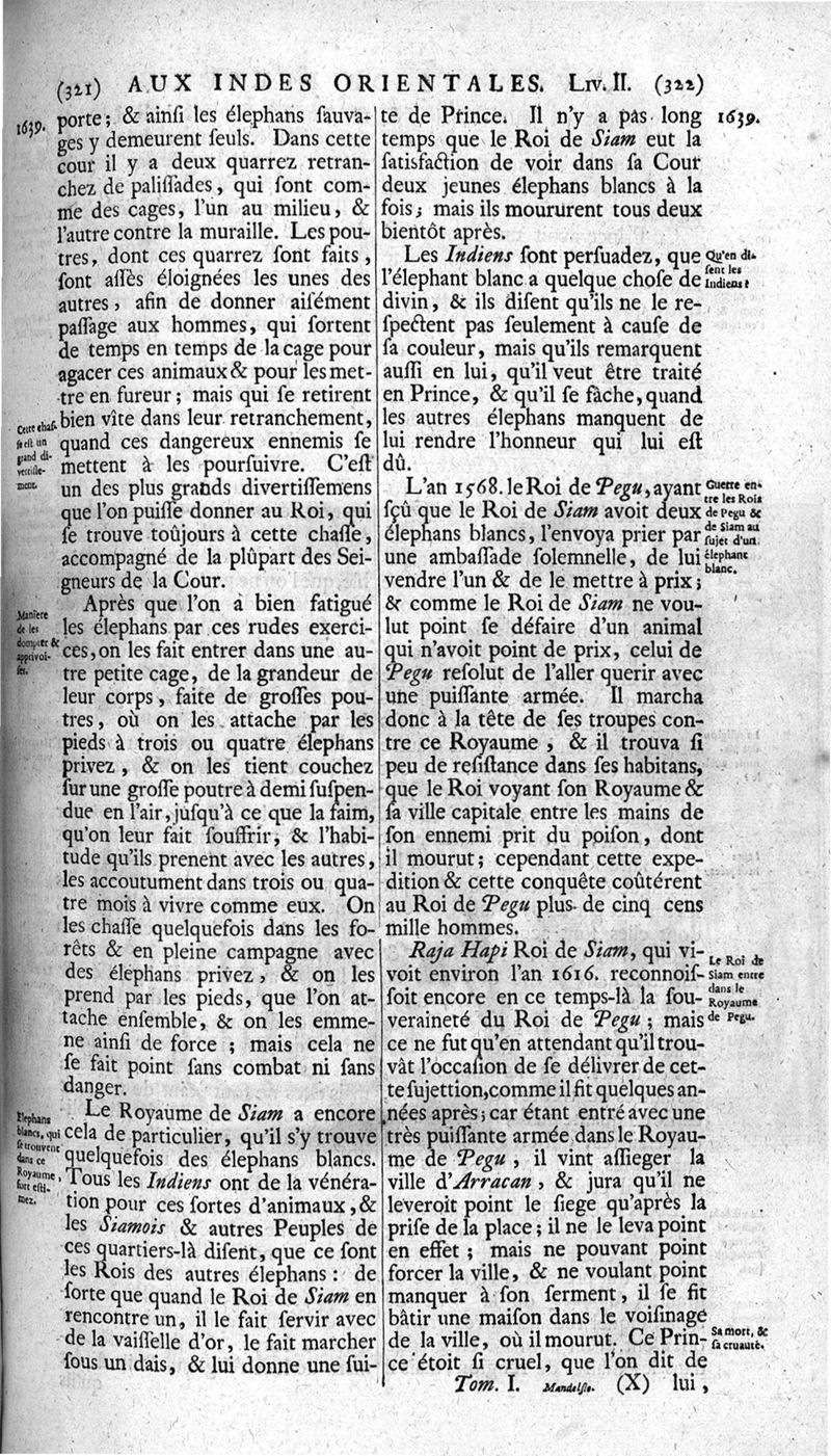 Voyages celebres & remarquables, faits de Perse aux Indes Orientales, par le sr. Jean-Albert de Mandelslo, gentilhomme des ambassadeurs du duc de Holstein en Moscovie & Perse. Contenant une description nouvelle & très-curieuse de l'Indostan, de l'empire du Grand-Mogol, des îles & presqu'îles de l'Orient, des royaumes de Siam, du Japon, de la Chine, du Congo, &c. Où l'on trouve la situation exacte de tous ces pays & etats ; & où l'on rapporte assez au long le naturel, les moeurs, & les coutumes de leurs habitans; leur gouvernement politique & ecclesiastique; les raretez qui se rencontrent dans ces pays; & les ceremonies qu'on y observe. Mis en ordre & publiez, après la mort de l'illustre voyageur, par le sr. Adam Olearius... Traduits de l'original par le sr. A. De Wicquefort ... Divisez en deux parties. Nouvelle edition revûe & corrigée exactement, augmentée considerablement, tant dans le corps de l'ouvrage qu'aux marginales, & surpassant en bonté & en beauté les précedentes editions. On y a encore ajouté des cartes géographiques, des représentations des villes, & autres taille-douces très-belles & très-exactes. On y trouve à la fin une Table fort ample & fort exacte. Tome premier [-second].