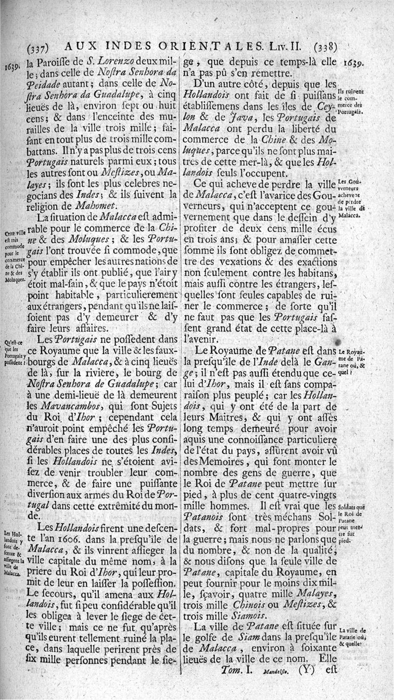 Voyages celebres & remarquables, faits de Perse aux Indes Orientales, par le sr. Jean-Albert de Mandelslo, gentilhomme des ambassadeurs du duc de Holstein en Moscovie & Perse. Contenant une description nouvelle & très-curieuse de l'Indostan, de l'empire du Grand-Mogol, des îles & presqu'îles de l'Orient, des royaumes de Siam, du Japon, de la Chine, du Congo, &c. Où l'on trouve la situation exacte de tous ces pays & etats ; & où l'on rapporte assez au long le naturel, les moeurs, & les coutumes de leurs habitans; leur gouvernement politique & ecclesiastique; les raretez qui se rencontrent dans ces pays; & les ceremonies qu'on y observe. Mis en ordre & publiez, après la mort de l'illustre voyageur, par le sr. Adam Olearius... Traduits de l'original par le sr. A. De Wicquefort ... Divisez en deux parties. Nouvelle edition revûe & corrigée exactement, augmentée considerablement, tant dans le corps de l'ouvrage qu'aux marginales, & surpassant en bonté & en beauté les précedentes editions. On y a encore ajouté des cartes géographiques, des représentations des villes, & autres taille-douces très-belles & très-exactes. On y trouve à la fin une Table fort ample & fort exacte. Tome premier [-second].