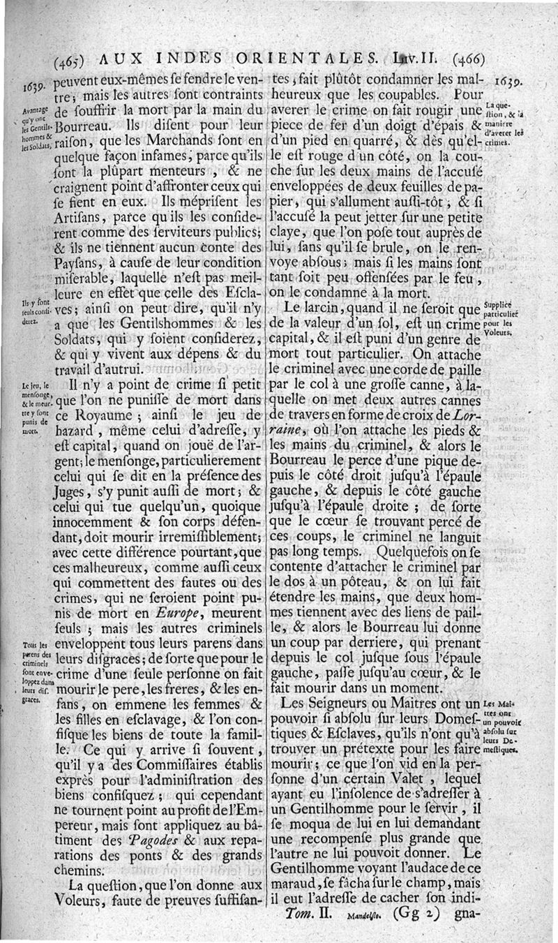 Voyages celebres & remarquables, faits de Perse aux Indes Orientales, par le sr. Jean-Albert de Mandelslo, gentilhomme des ambassadeurs du duc de Holstein en Moscovie & Perse. Contenant une description nouvelle & très-curieuse de l'Indostan, de l'empire du Grand-Mogol, des îles & presqu'îles de l'Orient, des royaumes de Siam, du Japon, de la Chine, du Congo, &c. Où l'on trouve la situation exacte de tous ces pays & etats ; & où l'on rapporte assez au long le naturel, les moeurs, & les coutumes de leurs habitans; leur gouvernement politique & ecclesiastique; les raretez qui se rencontrent dans ces pays; & les ceremonies qu'on y observe. Mis en ordre & publiez, après la mort de l'illustre voyageur, par le sr. Adam Olearius... Traduits de l'original par le sr. A. De Wicquefort ... Divisez en deux parties. Nouvelle edition revûe & corrigée exactement, augmentée considerablement, tant dans le corps de l'ouvrage qu'aux marginales, & surpassant en bonté & en beauté les précedentes editions. On y a encore ajouté des cartes géographiques, des représentations des villes, & autres taille-douces très-belles & très-exactes. On y trouve à la fin une Table fort ample & fort exacte. Tome premier [-second].