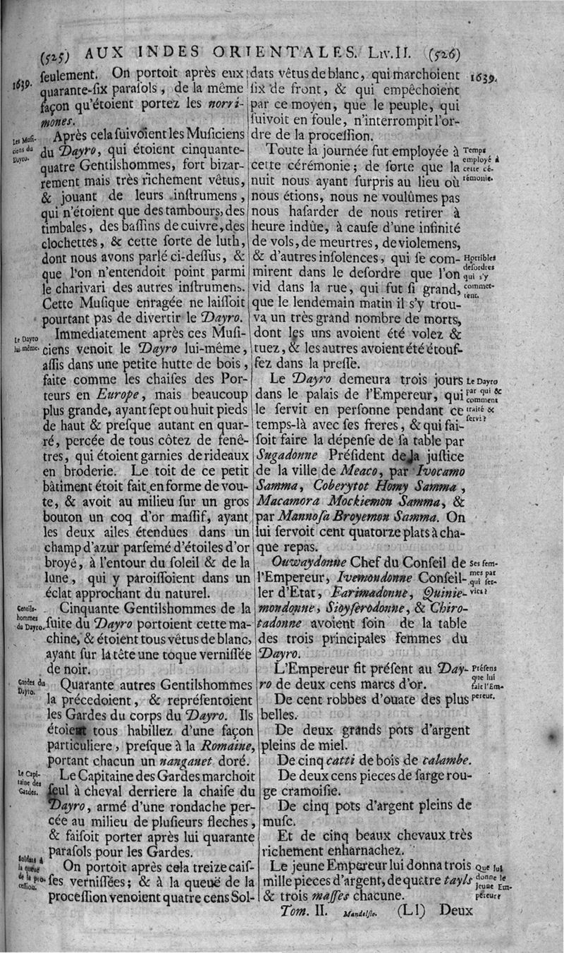 Voyages celebres & remarquables, faits de Perse aux Indes Orientales, par le sr. Jean-Albert de Mandelslo, gentilhomme des ambassadeurs du duc de Holstein en Moscovie & Perse. Contenant une description nouvelle & très-curieuse de l'Indostan, de l'empire du Grand-Mogol, des îles & presqu'îles de l'Orient, des royaumes de Siam, du Japon, de la Chine, du Congo, &c. Où l'on trouve la situation exacte de tous ces pays & etats ; & où l'on rapporte assez au long le naturel, les moeurs, & les coutumes de leurs habitans; leur gouvernement politique & ecclesiastique; les raretez qui se rencontrent dans ces pays; & les ceremonies qu'on y observe. Mis en ordre & publiez, après la mort de l'illustre voyageur, par le sr. Adam Olearius... Traduits de l'original par le sr. A. De Wicquefort ... Divisez en deux parties. Nouvelle edition revûe & corrigée exactement, augmentée considerablement, tant dans le corps de l'ouvrage qu'aux marginales, & surpassant en bonté & en beauté les précedentes editions. On y a encore ajouté des cartes géographiques, des représentations des villes, & autres taille-douces très-belles & très-exactes. On y trouve à la fin une Table fort ample & fort exacte. Tome premier [-second].