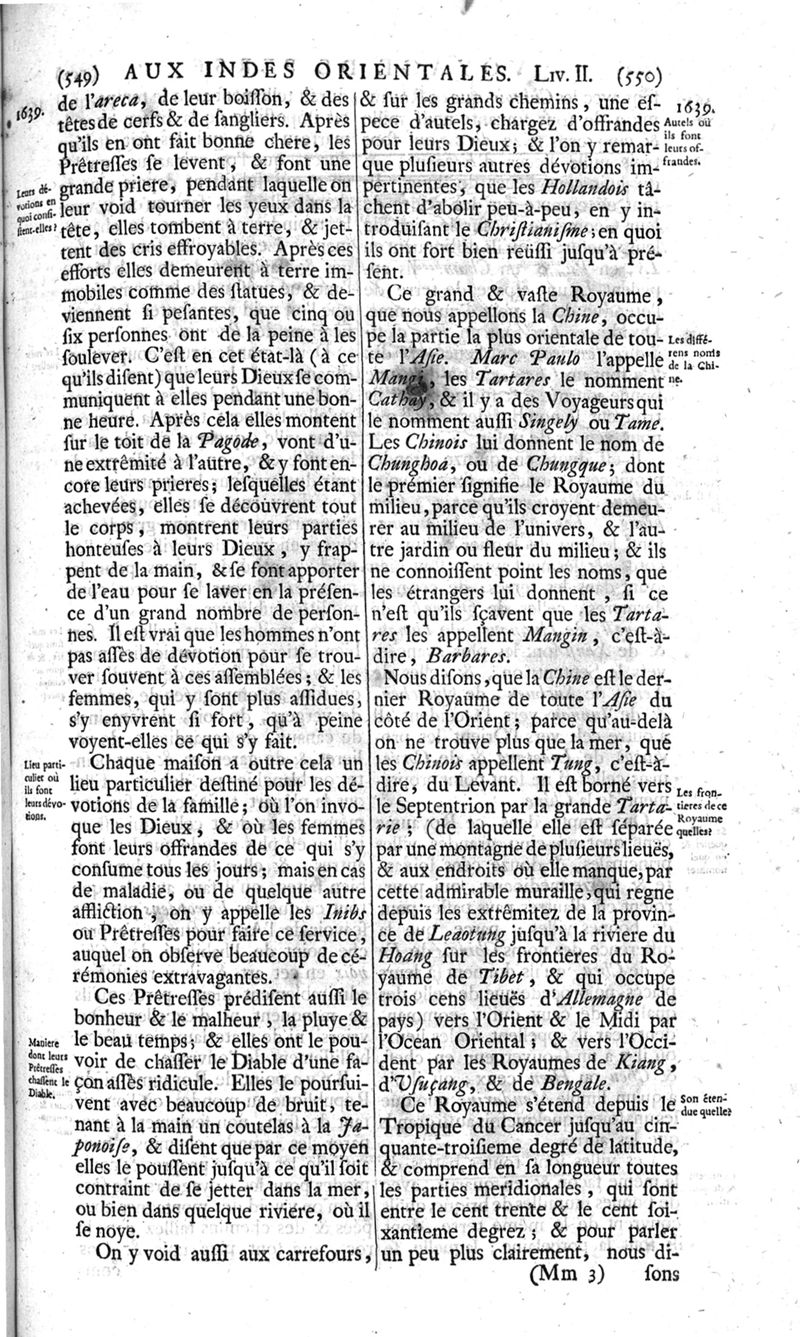 Voyages celebres & remarquables, faits de Perse aux Indes Orientales, par le sr. Jean-Albert de Mandelslo, gentilhomme des ambassadeurs du duc de Holstein en Moscovie & Perse. Contenant une description nouvelle & très-curieuse de l'Indostan, de l'empire du Grand-Mogol, des îles & presqu'îles de l'Orient, des royaumes de Siam, du Japon, de la Chine, du Congo, &c. Où l'on trouve la situation exacte de tous ces pays & etats ; & où l'on rapporte assez au long le naturel, les moeurs, & les coutumes de leurs habitans; leur gouvernement politique & ecclesiastique; les raretez qui se rencontrent dans ces pays; & les ceremonies qu'on y observe. Mis en ordre & publiez, après la mort de l'illustre voyageur, par le sr. Adam Olearius... Traduits de l'original par le sr. A. De Wicquefort ... Divisez en deux parties. Nouvelle edition revûe & corrigée exactement, augmentée considerablement, tant dans le corps de l'ouvrage qu'aux marginales, & surpassant en bonté & en beauté les précedentes editions. On y a encore ajouté des cartes géographiques, des représentations des villes, & autres taille-douces très-belles & très-exactes. On y trouve à la fin une Table fort ample & fort exacte. Tome premier [-second].