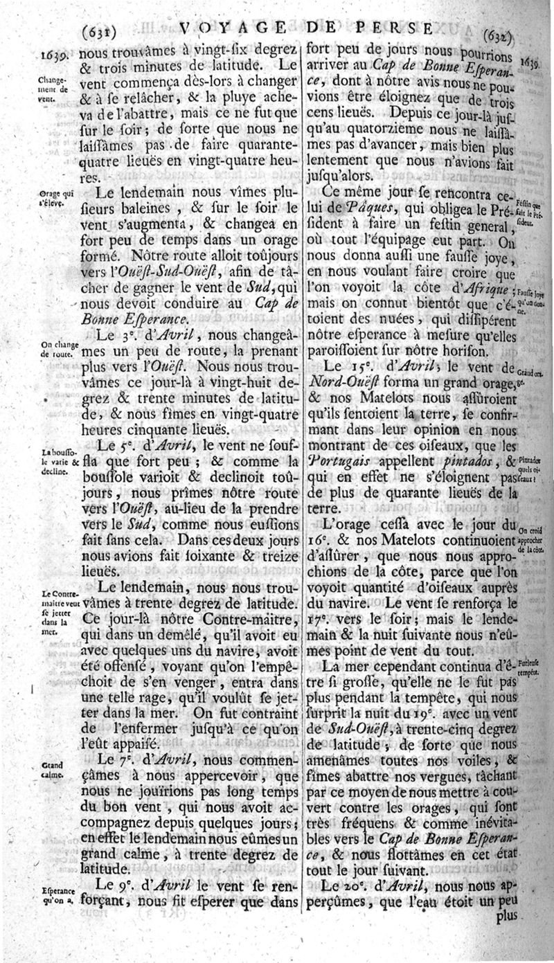 Voyages celebres & remarquables, faits de Perse aux Indes Orientales, par le sr. Jean-Albert de Mandelslo, gentilhomme des ambassadeurs du duc de Holstein en Moscovie & Perse. Contenant une description nouvelle & très-curieuse de l'Indostan, de l'empire du Grand-Mogol, des îles & presqu'îles de l'Orient, des royaumes de Siam, du Japon, de la Chine, du Congo, &c. Où l'on trouve la situation exacte de tous ces pays & etats ; & où l'on rapporte assez au long le naturel, les moeurs, & les coutumes de leurs habitans; leur gouvernement politique & ecclesiastique; les raretez qui se rencontrent dans ces pays; & les ceremonies qu'on y observe. Mis en ordre & publiez, après la mort de l'illustre voyageur, par le sr. Adam Olearius... Traduits de l'original par le sr. A. De Wicquefort ... Divisez en deux parties. Nouvelle edition revûe & corrigée exactement, augmentée considerablement, tant dans le corps de l'ouvrage qu'aux marginales, & surpassant en bonté & en beauté les précedentes editions. On y a encore ajouté des cartes géographiques, des représentations des villes, & autres taille-douces très-belles & très-exactes. On y trouve à la fin une Table fort ample & fort exacte. Tome premier [-second].