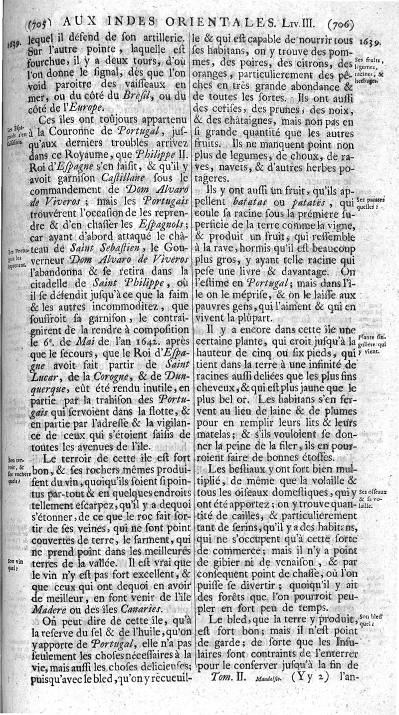 Voyages celebres & remarquables, faits de Perse aux Indes Orientales, par le sr. Jean-Albert de Mandelslo, gentilhomme des ambassadeurs du duc de Holstein en Moscovie & Perse. Contenant une description nouvelle & très-curieuse de l'Indostan, de l'empire du Grand-Mogol, des îles & presqu'îles de l'Orient, des royaumes de Siam, du Japon, de la Chine, du Congo, &c. Où l'on trouve la situation exacte de tous ces pays & etats ; & où l'on rapporte assez au long le naturel, les moeurs, & les coutumes de leurs habitans; leur gouvernement politique & ecclesiastique; les raretez qui se rencontrent dans ces pays; & les ceremonies qu'on y observe. Mis en ordre & publiez, après la mort de l'illustre voyageur, par le sr. Adam Olearius... Traduits de l'original par le sr. A. De Wicquefort ... Divisez en deux parties. Nouvelle edition revûe & corrigée exactement, augmentée considerablement, tant dans le corps de l'ouvrage qu'aux marginales, & surpassant en bonté & en beauté les précedentes editions. On y a encore ajouté des cartes géographiques, des représentations des villes, & autres taille-douces très-belles & très-exactes. On y trouve à la fin une Table fort ample & fort exacte. Tome premier [-second].