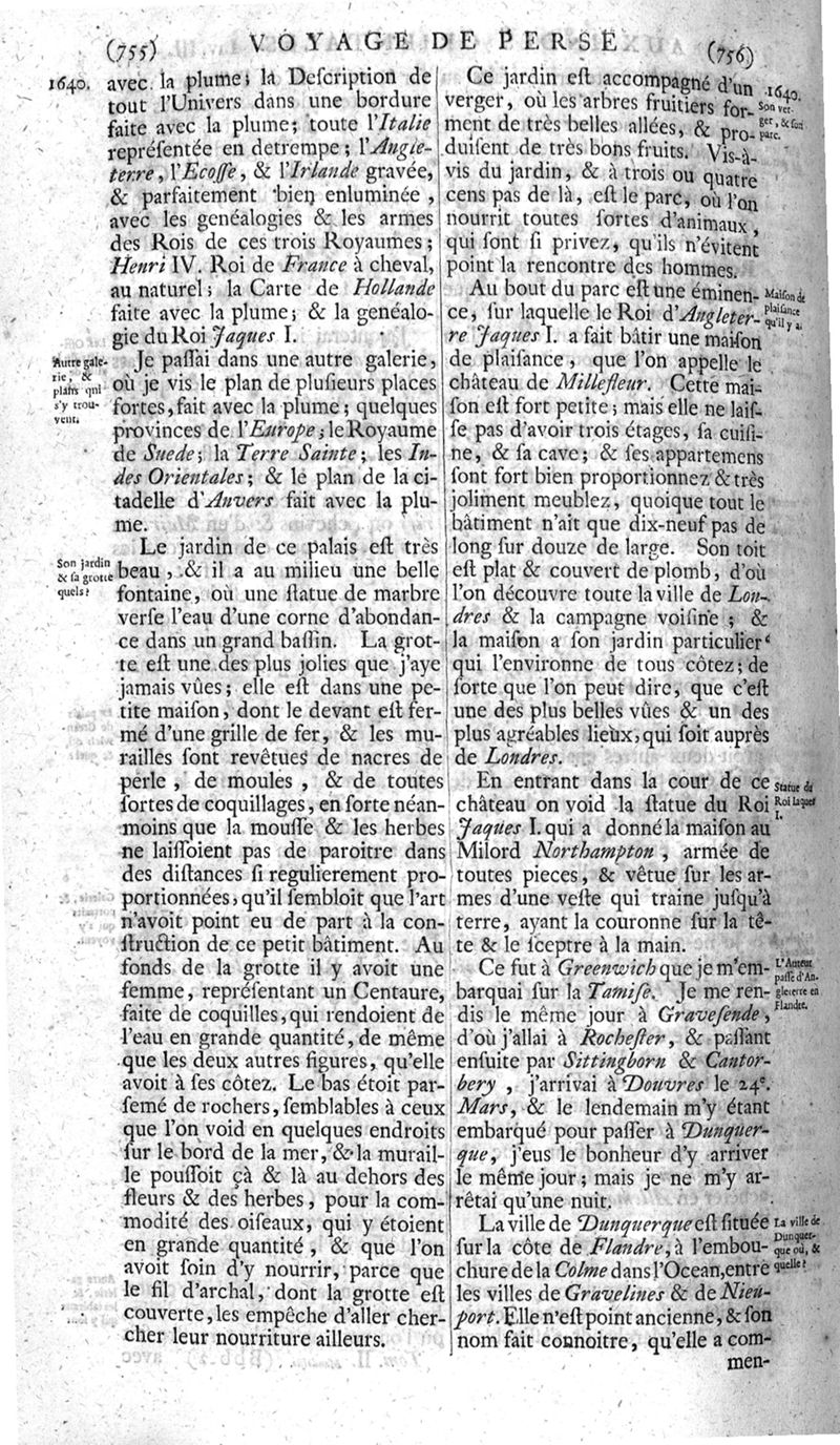 Voyages celebres & remarquables, faits de Perse aux Indes Orientales, par le sr. Jean-Albert de Mandelslo, gentilhomme des ambassadeurs du duc de Holstein en Moscovie & Perse. Contenant une description nouvelle & très-curieuse de l'Indostan, de l'empire du Grand-Mogol, des îles & presqu'îles de l'Orient, des royaumes de Siam, du Japon, de la Chine, du Congo, &c. Où l'on trouve la situation exacte de tous ces pays & etats ; & où l'on rapporte assez au long le naturel, les moeurs, & les coutumes de leurs habitans; leur gouvernement politique & ecclesiastique; les raretez qui se rencontrent dans ces pays; & les ceremonies qu'on y observe. Mis en ordre & publiez, après la mort de l'illustre voyageur, par le sr. Adam Olearius... Traduits de l'original par le sr. A. De Wicquefort ... Divisez en deux parties. Nouvelle edition revûe & corrigée exactement, augmentée considerablement, tant dans le corps de l'ouvrage qu'aux marginales, & surpassant en bonté & en beauté les précedentes editions. On y a encore ajouté des cartes géographiques, des représentations des villes, & autres taille-douces très-belles & très-exactes. On y trouve à la fin une Table fort ample & fort exacte. Tome premier [-second].