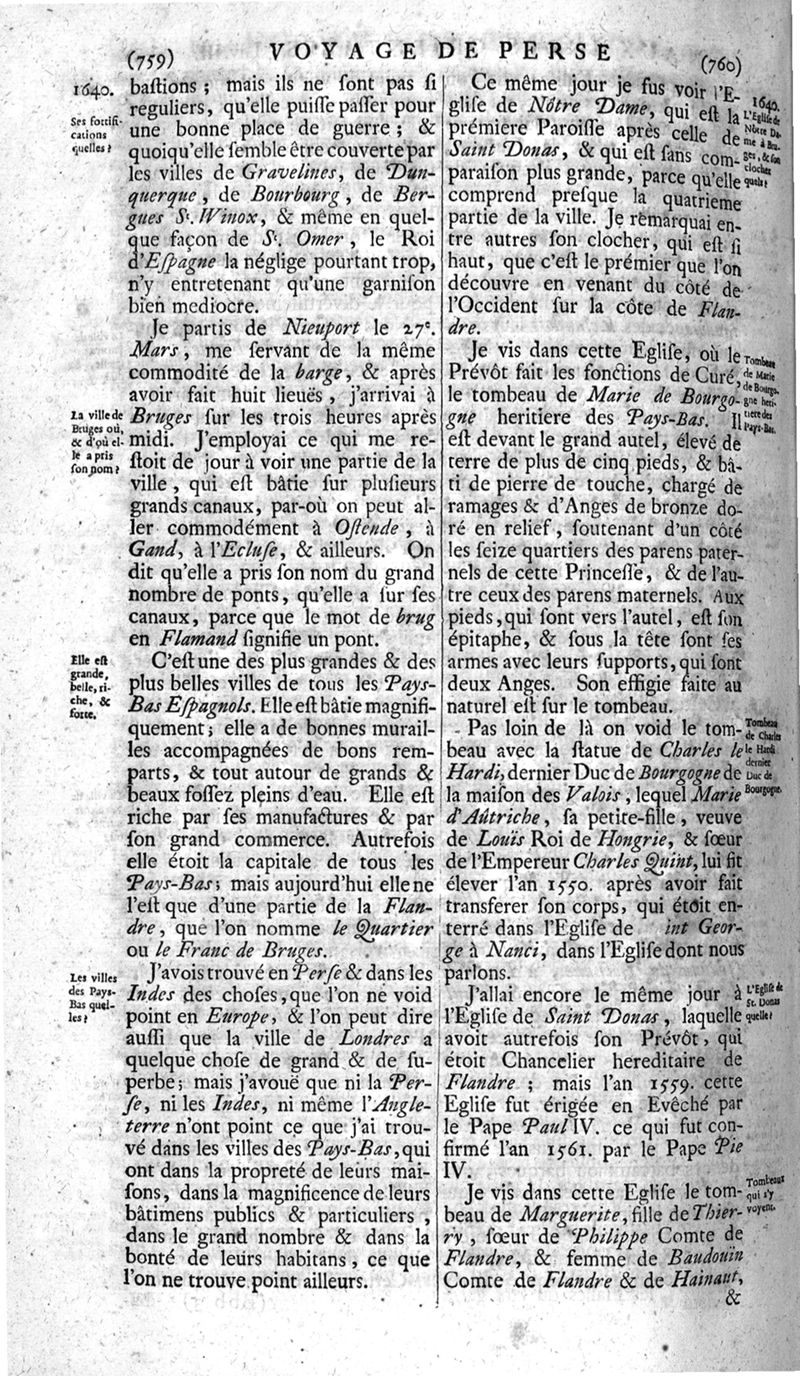 Voyages celebres & remarquables, faits de Perse aux Indes Orientales, par le sr. Jean-Albert de Mandelslo, gentilhomme des ambassadeurs du duc de Holstein en Moscovie & Perse. Contenant une description nouvelle & très-curieuse de l'Indostan, de l'empire du Grand-Mogol, des îles & presqu'îles de l'Orient, des royaumes de Siam, du Japon, de la Chine, du Congo, &c. Où l'on trouve la situation exacte de tous ces pays & etats ; & où l'on rapporte assez au long le naturel, les moeurs, & les coutumes de leurs habitans; leur gouvernement politique & ecclesiastique; les raretez qui se rencontrent dans ces pays; & les ceremonies qu'on y observe. Mis en ordre & publiez, après la mort de l'illustre voyageur, par le sr. Adam Olearius... Traduits de l'original par le sr. A. De Wicquefort ... Divisez en deux parties. Nouvelle edition revûe & corrigée exactement, augmentée considerablement, tant dans le corps de l'ouvrage qu'aux marginales, & surpassant en bonté & en beauté les précedentes editions. On y a encore ajouté des cartes géographiques, des représentations des villes, & autres taille-douces très-belles & très-exactes. On y trouve à la fin une Table fort ample & fort exacte. Tome premier [-second].