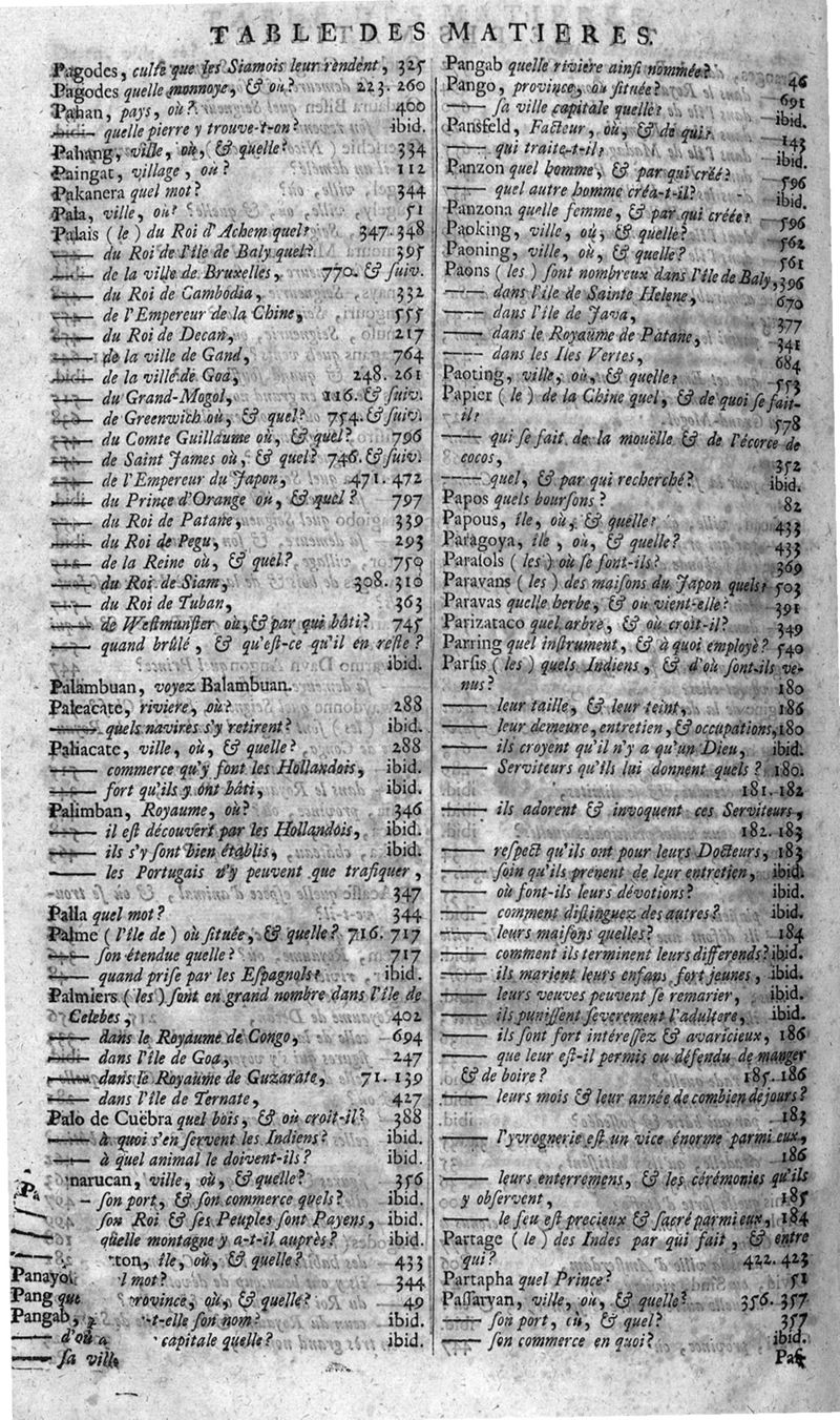 Voyages celebres & remarquables, faits de Perse aux Indes Orientales, par le sr. Jean-Albert de Mandelslo, gentilhomme des ambassadeurs du duc de Holstein en Moscovie & Perse. Contenant une description nouvelle & très-curieuse de l'Indostan, de l'empire du Grand-Mogol, des îles & presqu'îles de l'Orient, des royaumes de Siam, du Japon, de la Chine, du Congo, &c. Où l'on trouve la situation exacte de tous ces pays & etats ; & où l'on rapporte assez au long le naturel, les moeurs, & les coutumes de leurs habitans; leur gouvernement politique & ecclesiastique; les raretez qui se rencontrent dans ces pays; & les ceremonies qu'on y observe. Mis en ordre & publiez, après la mort de l'illustre voyageur, par le sr. Adam Olearius... Traduits de l'original par le sr. A. De Wicquefort ... Divisez en deux parties. Nouvelle edition revûe & corrigée exactement, augmentée considerablement, tant dans le corps de l'ouvrage qu'aux marginales, & surpassant en bonté & en beauté les précedentes editions. On y a encore ajouté des cartes géographiques, des représentations des villes, & autres taille-douces très-belles & très-exactes. On y trouve à la fin une Table fort ample & fort exacte. Tome premier [-second].