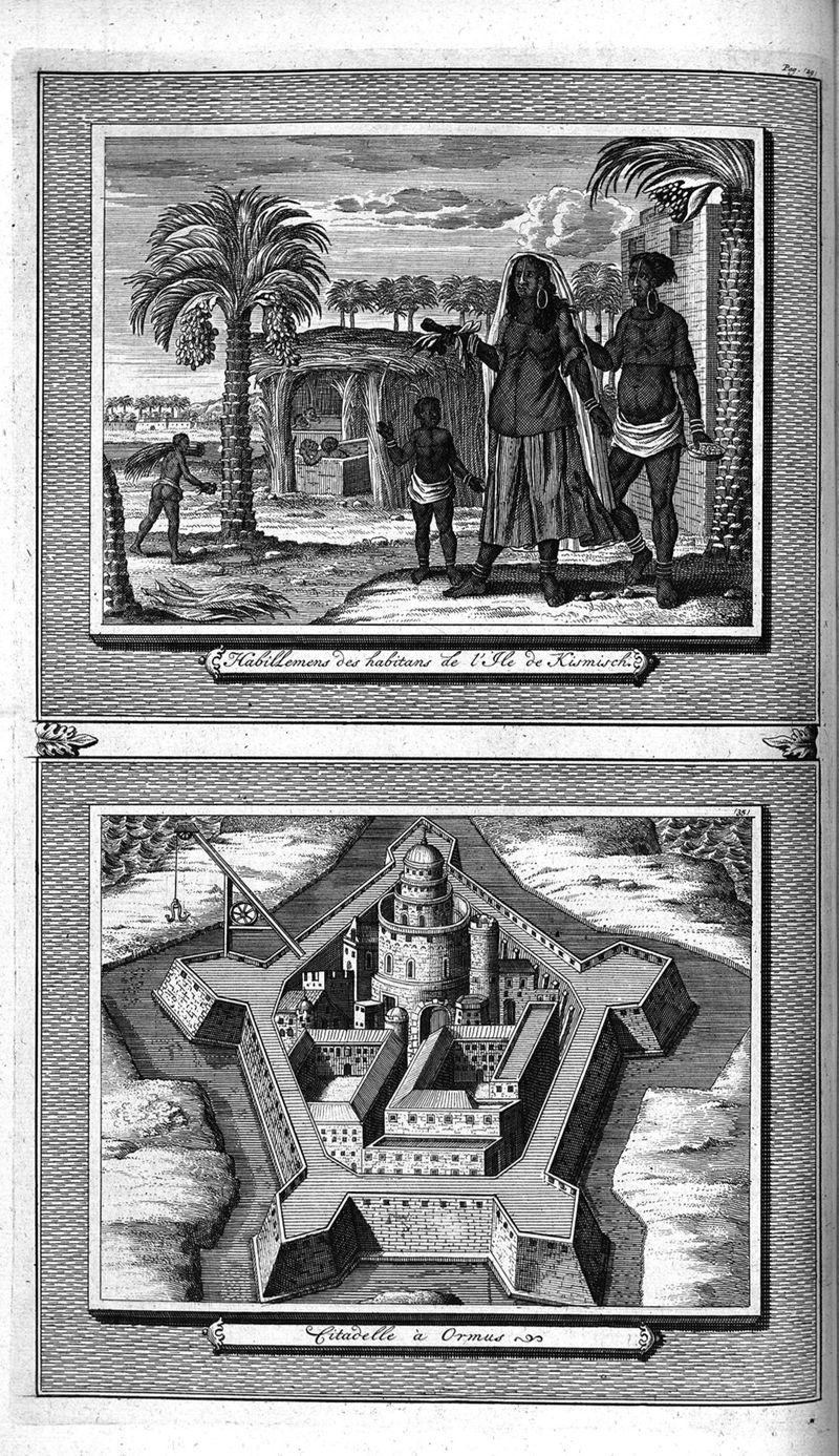Voyages celebres & remarquables, faits de Perse aux Indes Orientales, par le sr. Jean-Albert de Mandelslo, gentilhomme des ambassadeurs du duc de Holstein en Moscovie & Perse. Contenant une description nouvelle & très-curieuse de l'Indostan, de l'empire du Grand-Mogol, des îles & presqu'îles de l'Orient, des royaumes de Siam, du Japon, de la Chine, du Congo, &c. Où l'on trouve la situation exacte de tous ces pays & etats ; & où l'on rapporte assez au long le naturel, les moeurs, & les coutumes de leurs habitans; leur gouvernement politique & ecclesiastique; les raretez qui se rencontrent dans ces pays; & les ceremonies qu'on y observe. Mis en ordre & publiez, après la mort de l'illustre voyageur, par le sr. Adam Olearius... Traduits de l'original par le sr. A. De Wicquefort ... Divisez en deux parties. Nouvelle edition revûe & corrigée exactement, augmentée considerablement, tant dans le corps de l'ouvrage qu'aux marginales, & surpassant en bonté & en beauté les précedentes editions. On y a encore ajouté des cartes géographiques, des représentations des villes, & autres taille-douces très-belles & très-exactes. On y trouve à la fin une Table fort ample & fort exacte. Tome premier [-second].