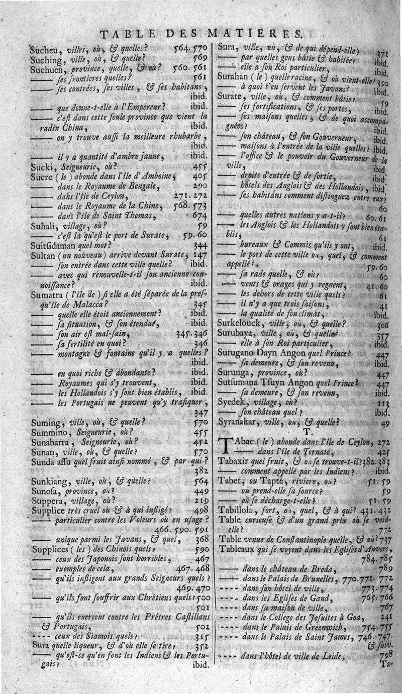 Voyages celebres & remarquables, faits de Perse aux Indes Orientales, par le sr. Jean-Albert de Mandelslo, gentilhomme des ambassadeurs du duc de Holstein en Moscovie & Perse. Contenant une description nouvelle & très-curieuse de l'Indostan, de l'empire du Grand-Mogol, des îles & presqu'îles de l'Orient, des royaumes de Siam, du Japon, de la Chine, du Congo, &c. Où l'on trouve la situation exacte de tous ces pays & etats ; & où l'on rapporte assez au long le naturel, les moeurs, & les coutumes de leurs habitans; leur gouvernement politique & ecclesiastique; les raretez qui se rencontrent dans ces pays; & les ceremonies qu'on y observe. Mis en ordre & publiez, après la mort de l'illustre voyageur, par le sr. Adam Olearius... Traduits de l'original par le sr. A. De Wicquefort ... Divisez en deux parties. Nouvelle edition revûe & corrigée exactement, augmentée considerablement, tant dans le corps de l'ouvrage qu'aux marginales, & surpassant en bonté & en beauté les précedentes editions. On y a encore ajouté des cartes géographiques, des représentations des villes, & autres taille-douces très-belles & très-exactes. On y trouve à la fin une Table fort ample & fort exacte. Tome premier [-second].