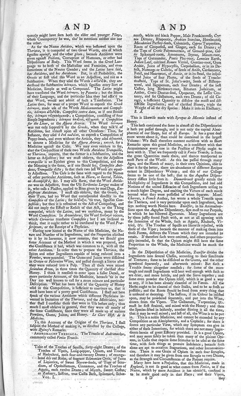 A medicinal dictionary : including physic, surgery, anatomy, chymistry, and botany. In all their branches relative to medicine. Together with a history of drugs. Vol. I
