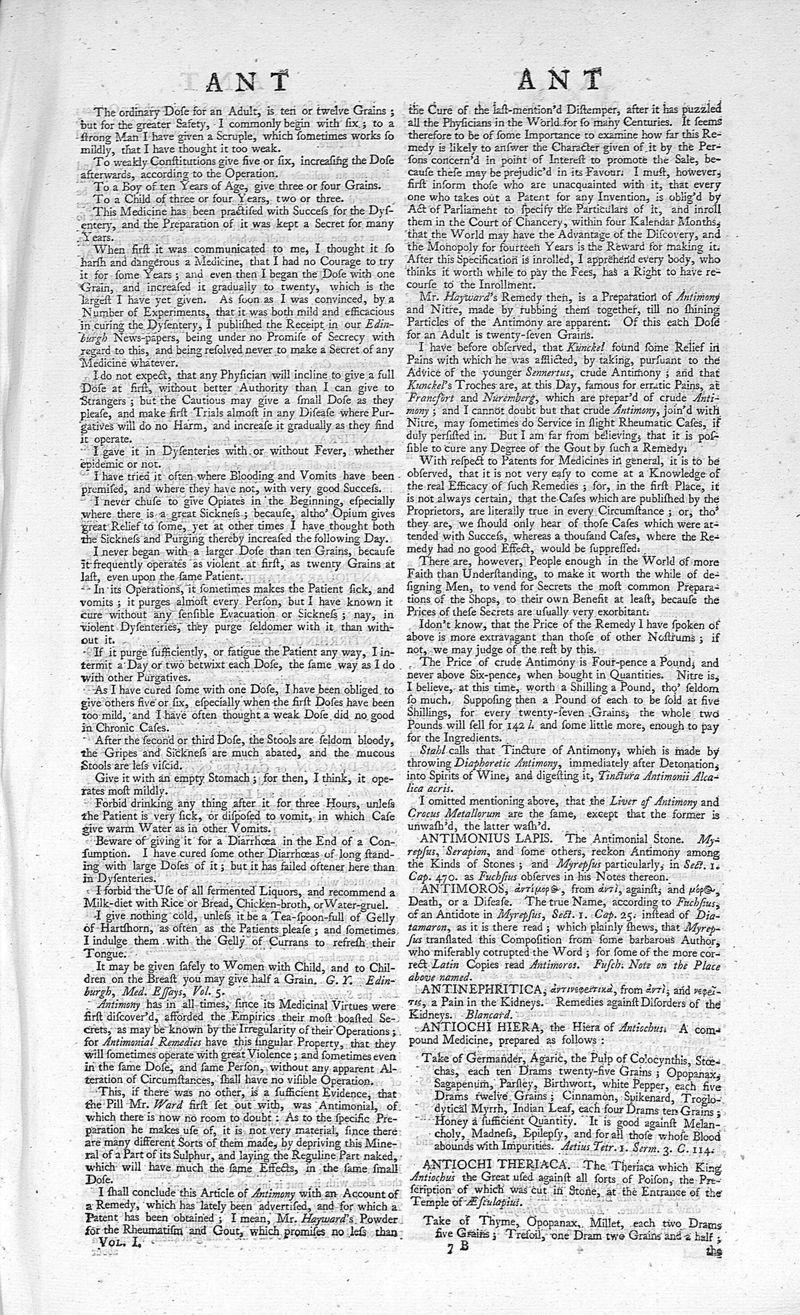 A medicinal dictionary : including physic, surgery, anatomy, chymistry, and botany. In all their branches relative to medicine. Together with a history of drugs. Vol. I