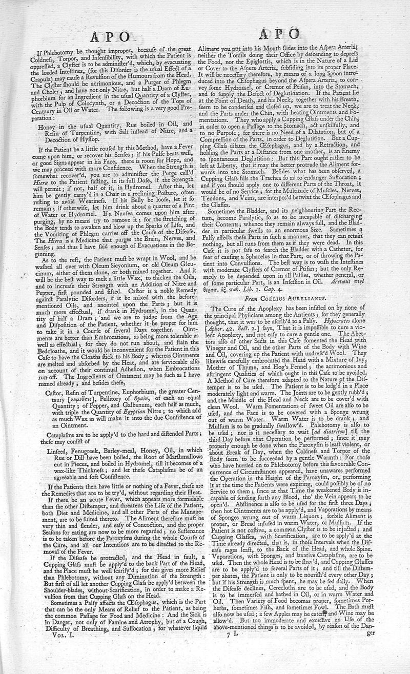 A medicinal dictionary : including physic, surgery, anatomy, chymistry, and botany. In all their branches relative to medicine. Together with a history of drugs. Vol. I