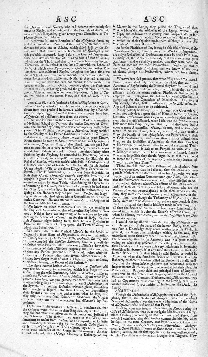 A medicinal dictionary : including physic, surgery, anatomy, chymistry, and botany. In all their branches relative to medicine. Together with a history of drugs. Vol. I