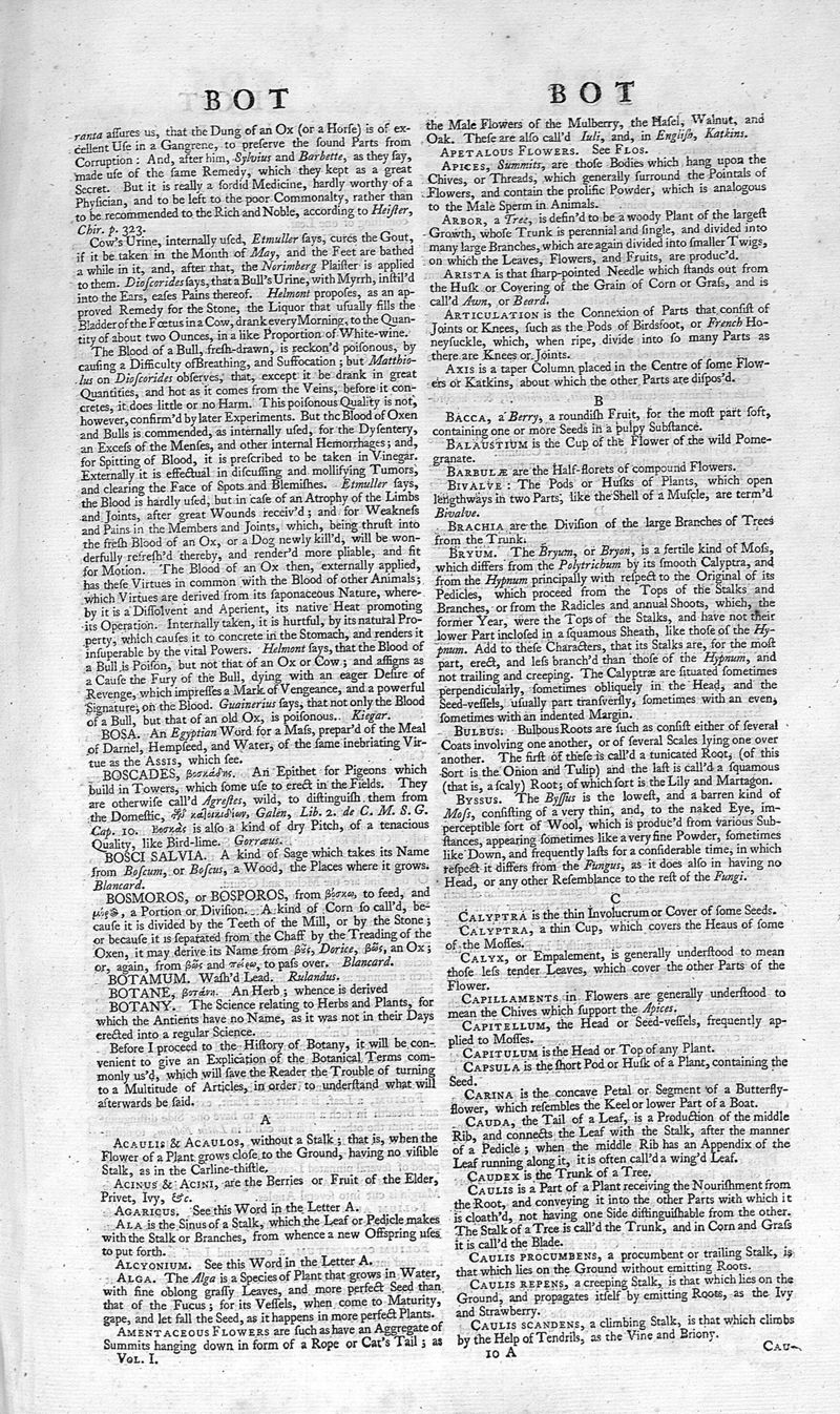 A medicinal dictionary : including physic, surgery, anatomy, chymistry, and botany. In all their branches relative to medicine. Together with a history of drugs. Vol. I