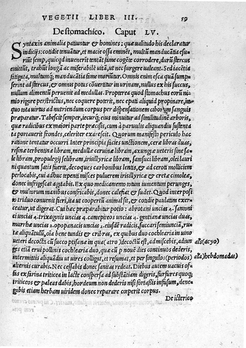Vegetii Renati Artis veterinariae, sive Mulomedicinae libri quatuor, jam primum typis in lucem aediti. Opus sane in rebus medicis minime aspernandum.