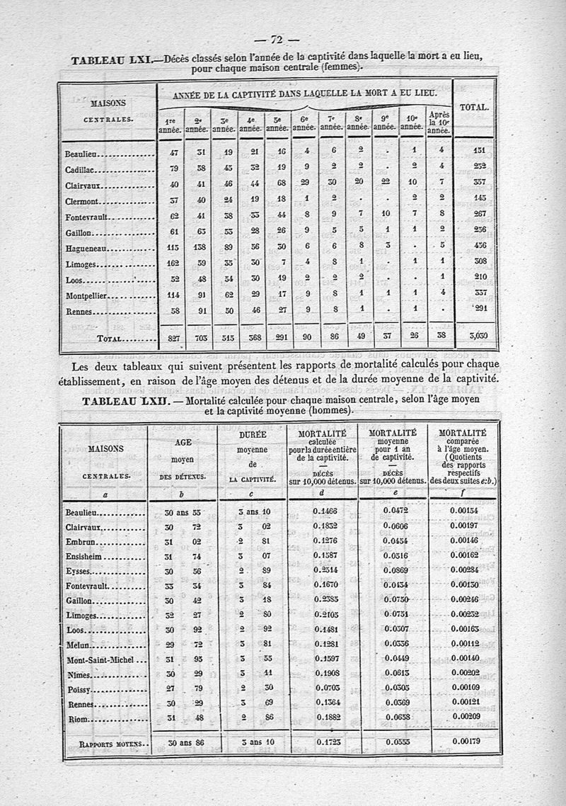 Études sur la mortalité dans les bagnes et dans les maisons centrales de force et de correction, depuis 1822 jusqu'à 1837 inclusivement... d'après des documents officiels fournis par les ministères de l'Intérieur et de la Marine, par M. Raoul Chassinat,...