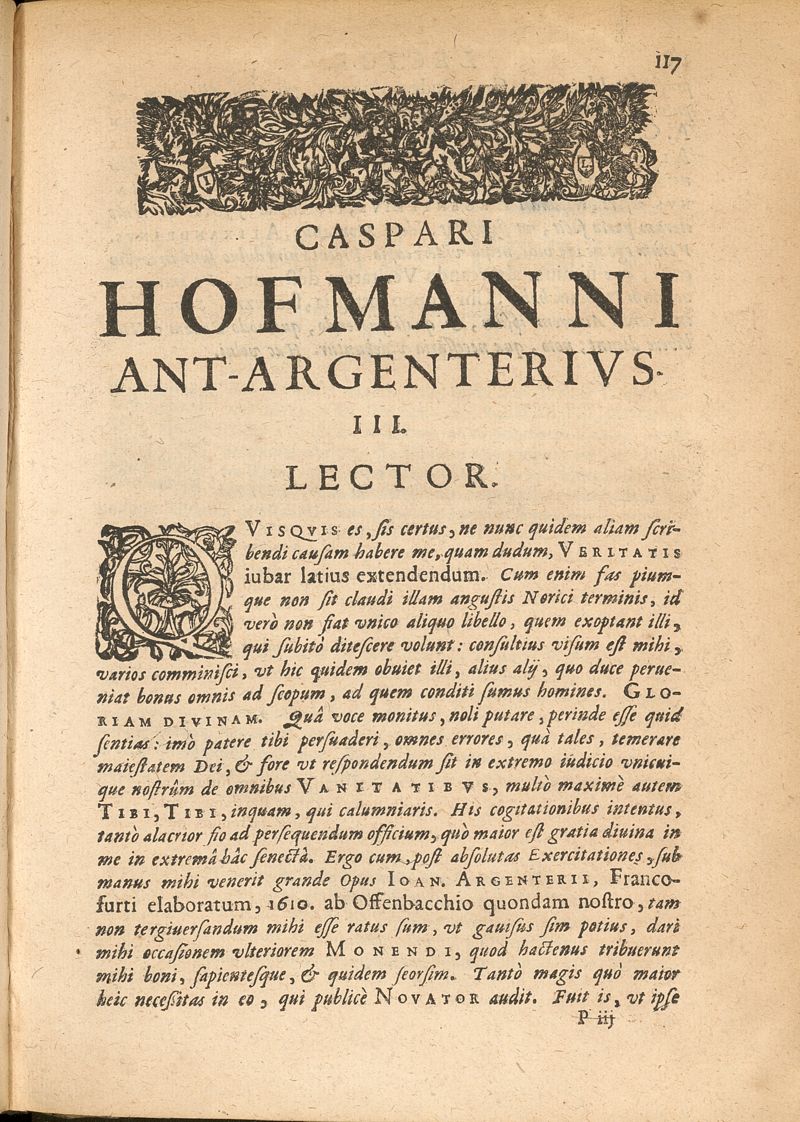 Caspari Hofmanni Pro veritate opellae tres: I. Adrastea Galeni. II. Exercitationes juveniles contra Parisanum, aliosque. III. Ant-Argenterius.