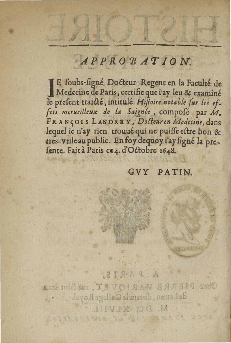 Histoire notable sur les effects merveilleux de la saignée