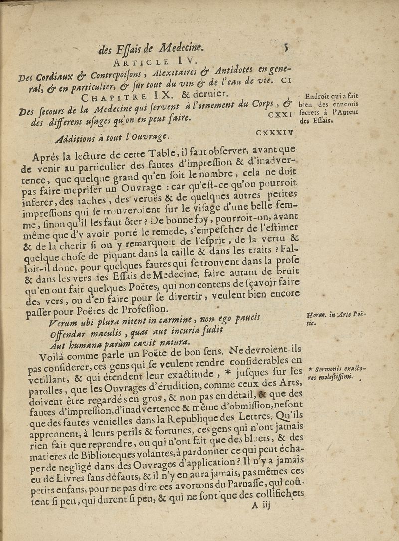 Supplémens au livre des essais de medecine. Avec des corrections, & des observations necessaires pour lire cet ouvrage avec utilité & plaisir