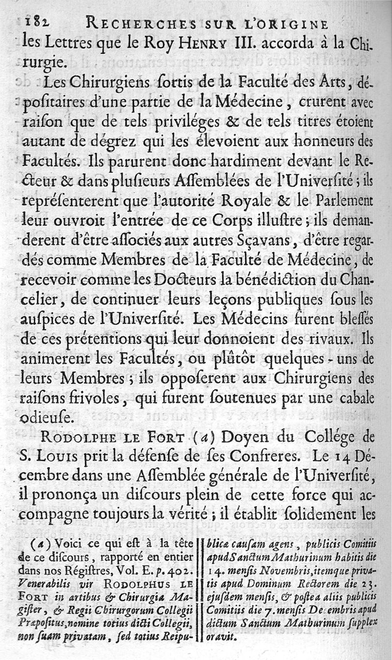 Recherches critiques et historiques sur l'origine, sur les divers états et sur les progrès de la chirurgie en France