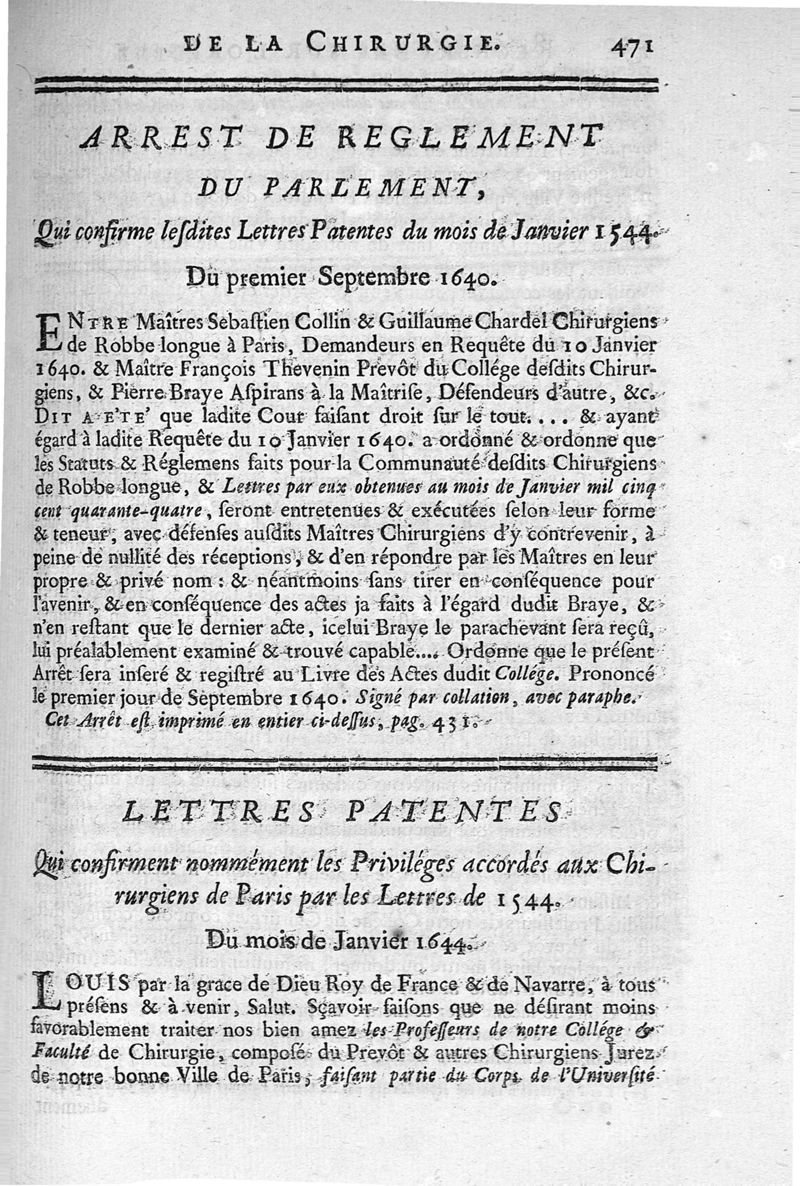 Recherches critiques et historiques sur l'origine, sur les divers états et sur les progrès de la chirurgie en France