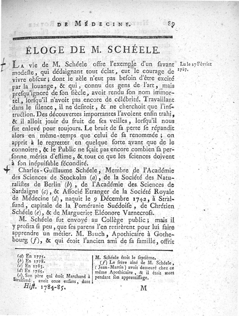 Année 1784 et 1785. -