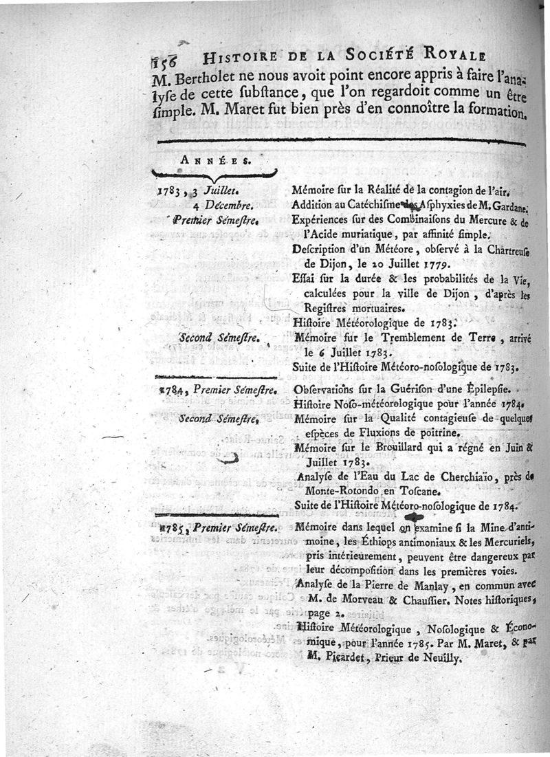 Année 1784 et 1785. -