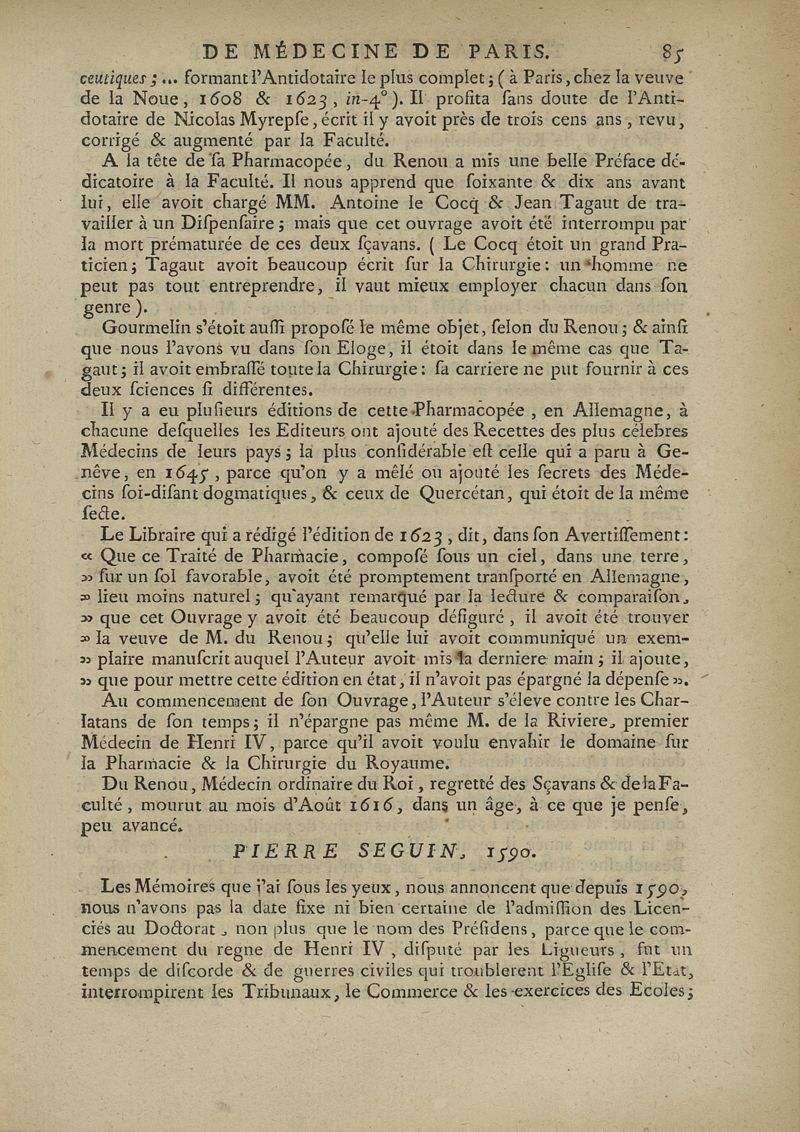 Notice des hommes les plus célèbres de la Faculté de médecine en l'université de Paris, depuis 1110 jusqu'en 1750 (inclusivement), extraite (en plus grande partie) du manuscrit de feu M. Thomas-Bernard Bertrand, communiqué par son fils
