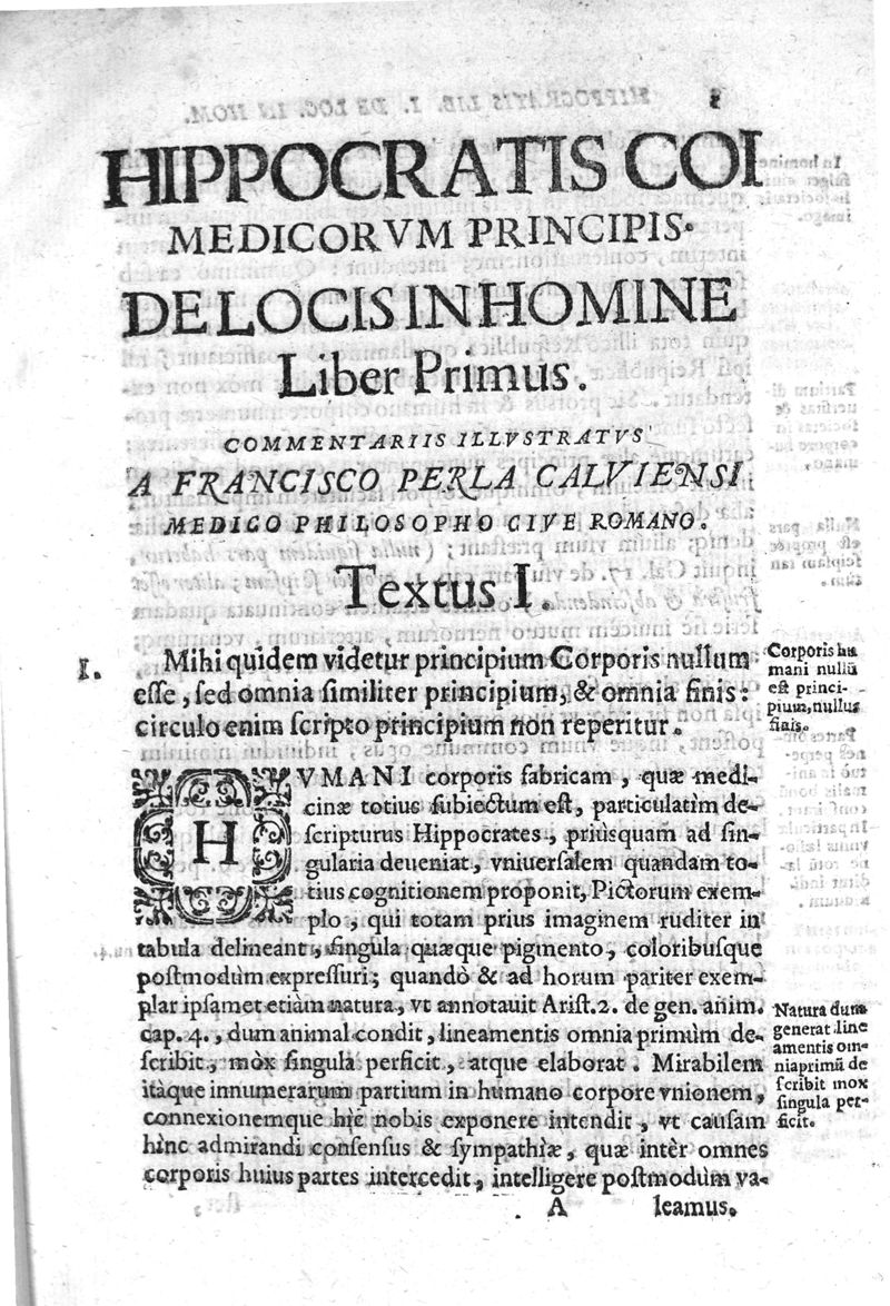 Hippocratis Coi Medicorum principis Liber de Locis in Homine commentariis illustratus a Francisco Perla Calviensi