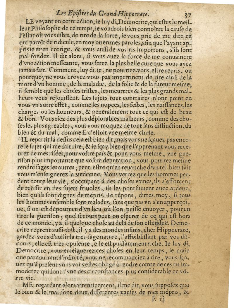 Les oeuvres du grand Hippocrate divisee en deux tomes ou toutes les classes de la vie de la naissance & de la conservation de la santé ; les signes & les symptomes de toutes les maladies sont nettenement expliquées avec leur guerison, par les lumieres du mouvement circulaire, et autres nouvelles experiences