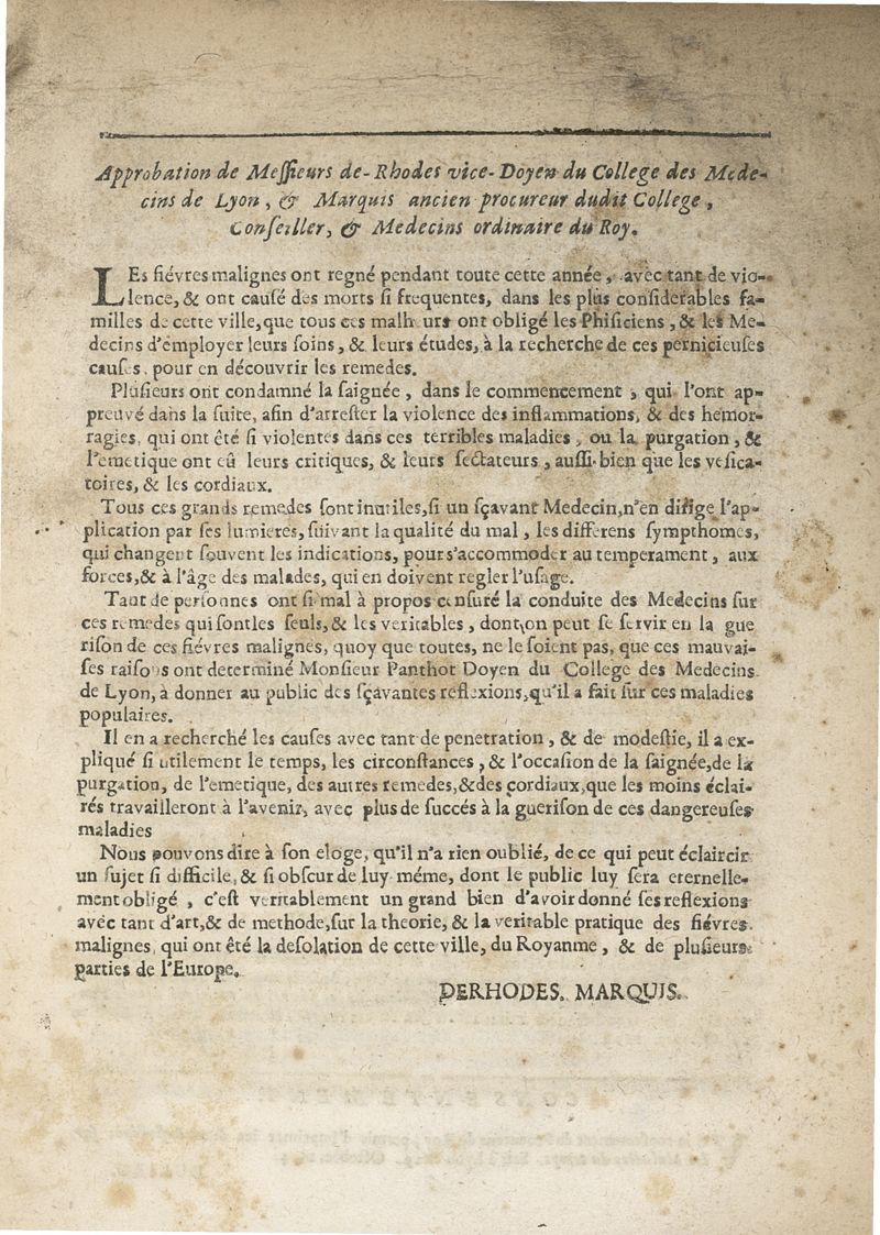 Reflections sur l'etat present des maladies, qui regnent dans la ville de Lyon...