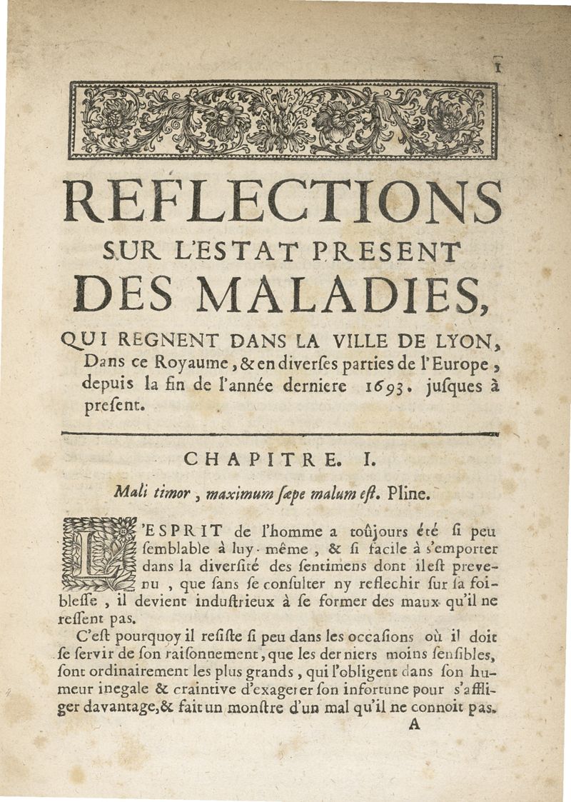 Reflections sur l'etat present des maladies, qui regnent dans la ville de Lyon...
