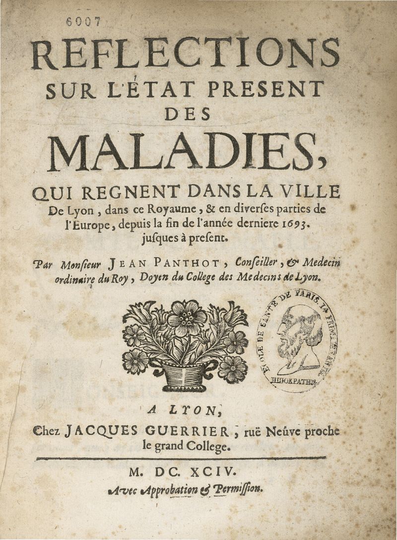 Reflections sur l'etat present des maladies, qui regnent dans la ville de Lyon...
