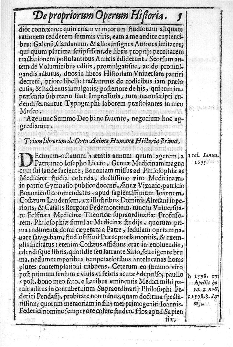 Fortunii Liceti,... de Propriorum operum historia libri duo...