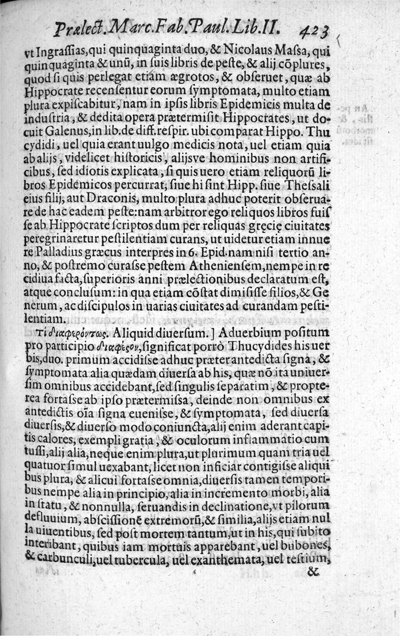Praelectiones Marciae, sive Commentaria in Thucydidis historiam, seu narrationem de Peste Atheniensium.