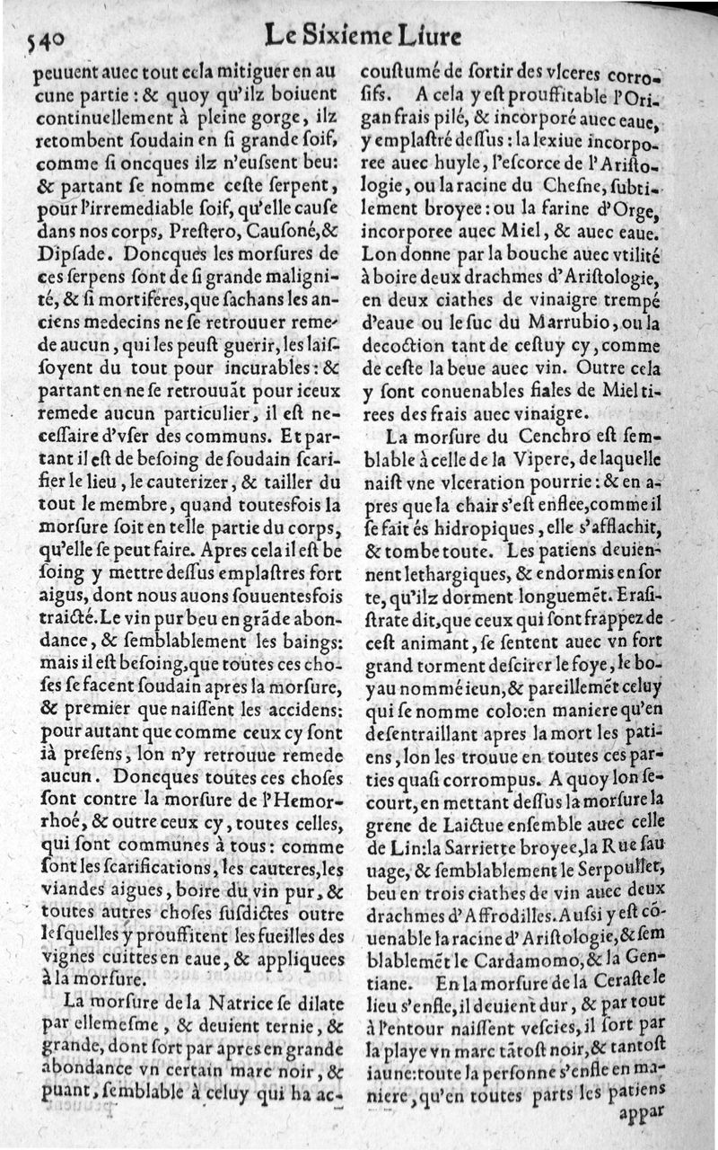 Les six livres de Pedacion Dioscoride d’Anazarbe, de la matiere medicale, translatez de Latin en François. A chacun Chapitre sont adjoustees certaines annotations fort doctes, et recueillies des plus excellens Medecins, anciens et modernes, Avec Privilege pour cinq ans,