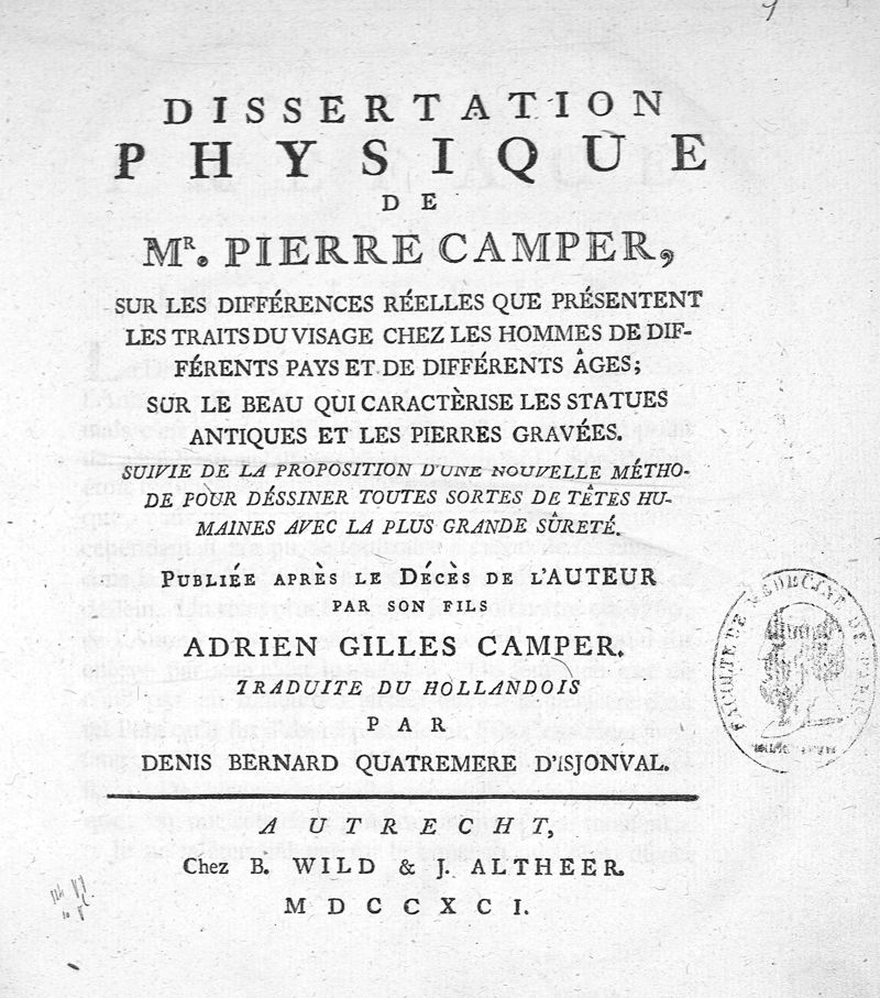 Dissertation physique... sur les différences réelles que présentent les traits du visage chez les hommes de différents pays et de différents âges