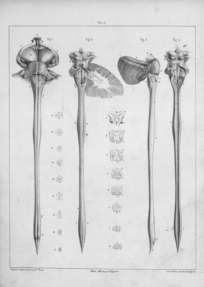 Traité complet de l'anatomie, de la physiologie et de la pathologie du système nerveux cérébro-spinal, première partie. Atlas par Emile Beau et F. Bion