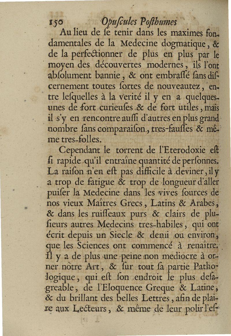 Opuscules posthumes...contenant des discours & des lettres sur sivers sujets, tant de physique & de médecine,...