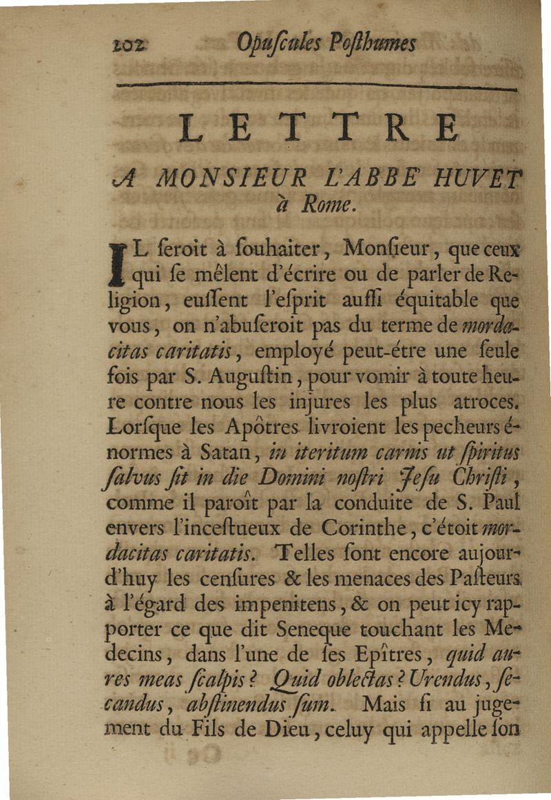 Opuscules posthumes...contenant des discours & des lettres sur sivers sujets, tant de physique & de médecine,...