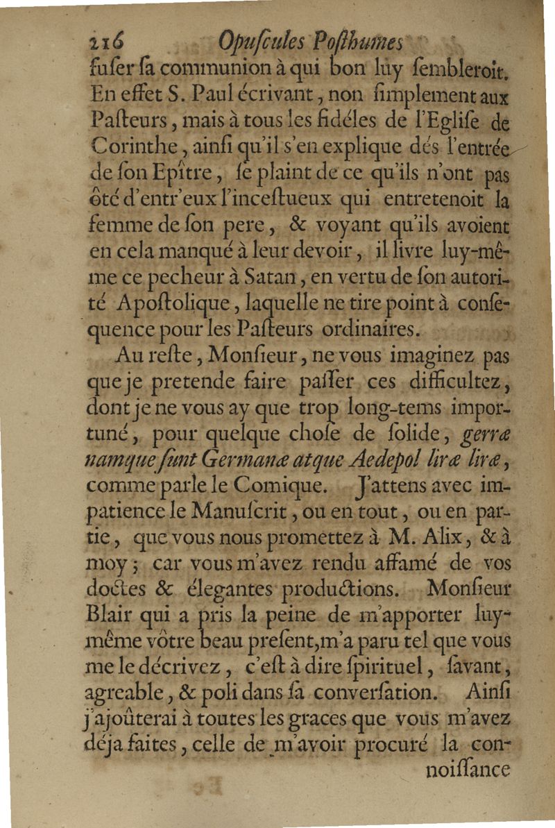 Opuscules posthumes...contenant des discours & des lettres sur sivers sujets, tant de physique & de médecine,...