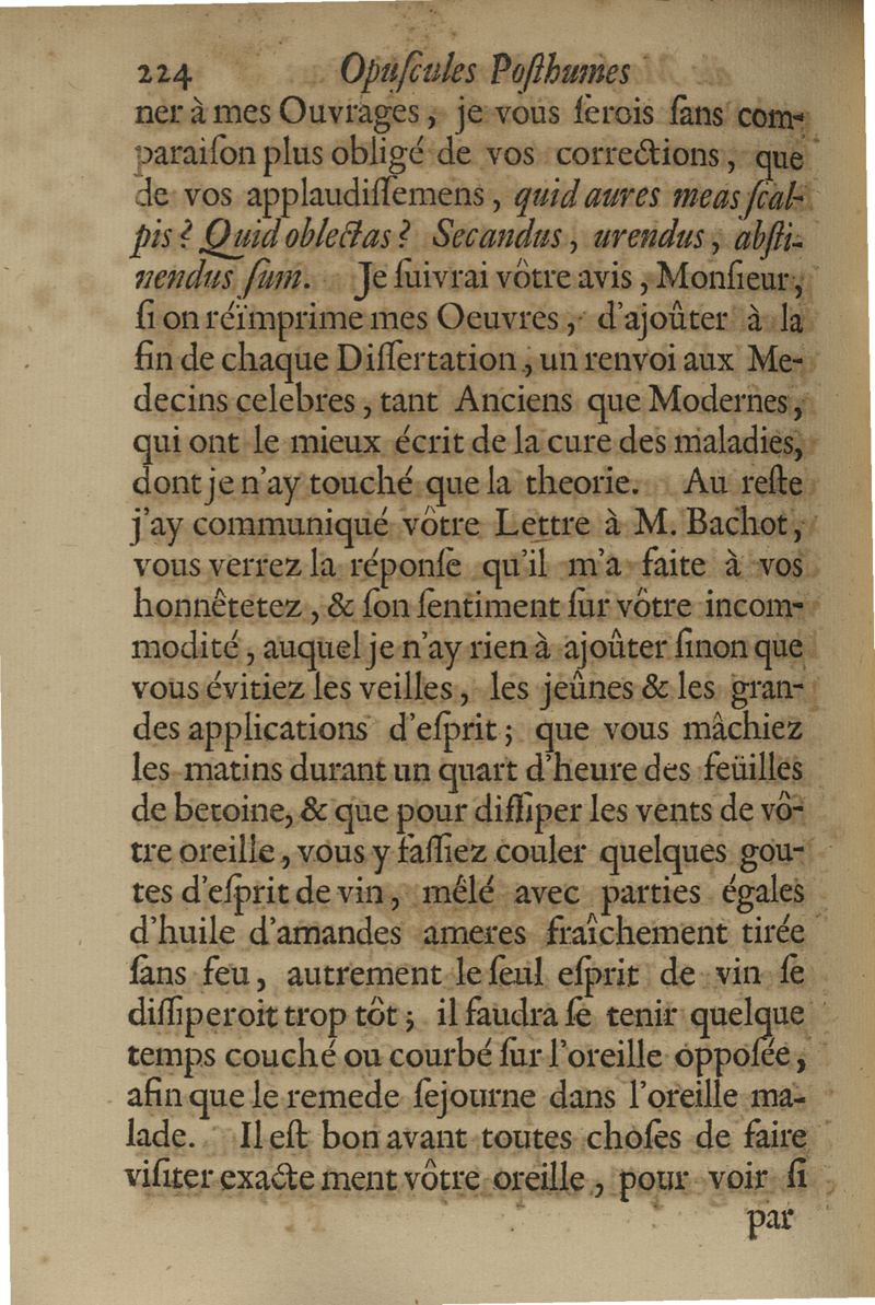 Opuscules posthumes...contenant des discours & des lettres sur sivers sujets, tant de physique & de médecine,...