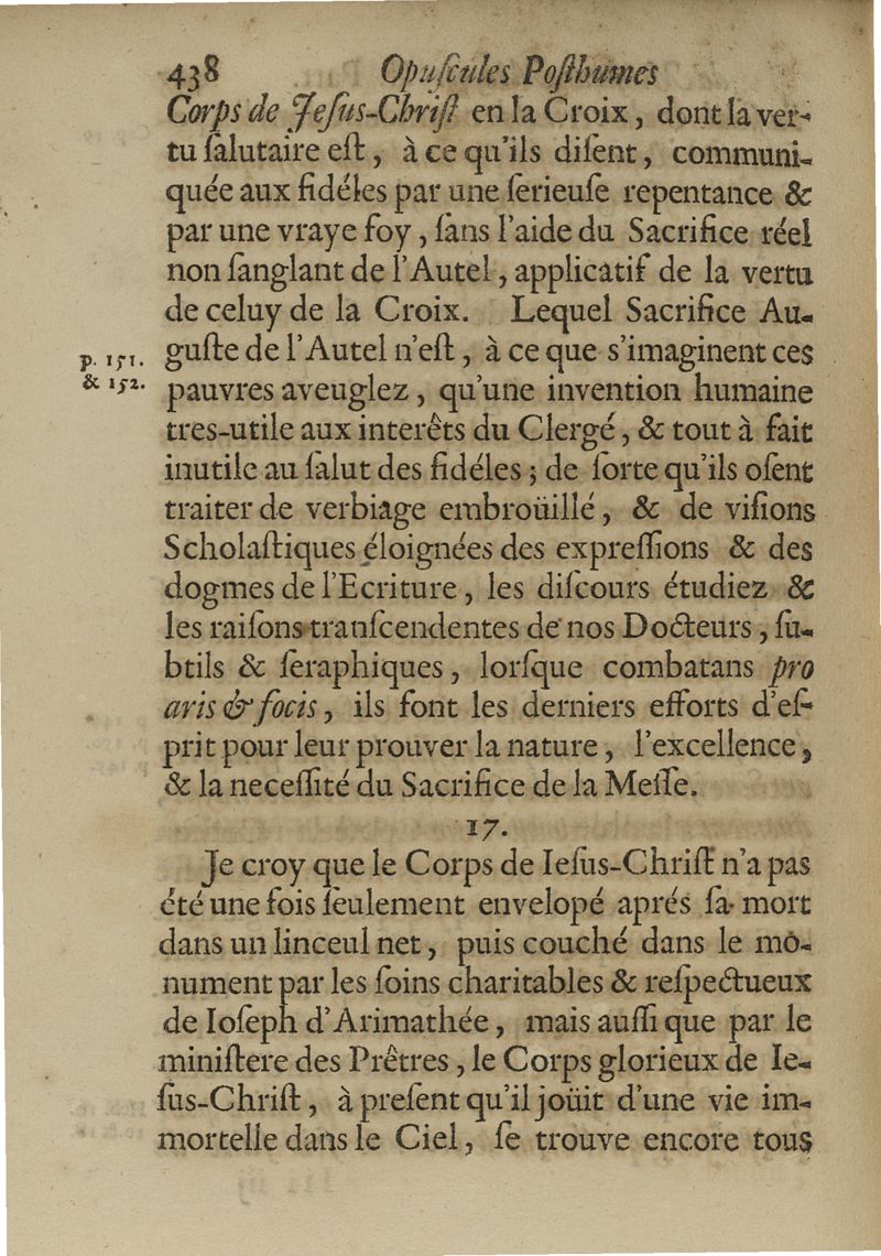 Opuscules posthumes...contenant des discours & des lettres sur sivers sujets, tant de physique & de médecine,...