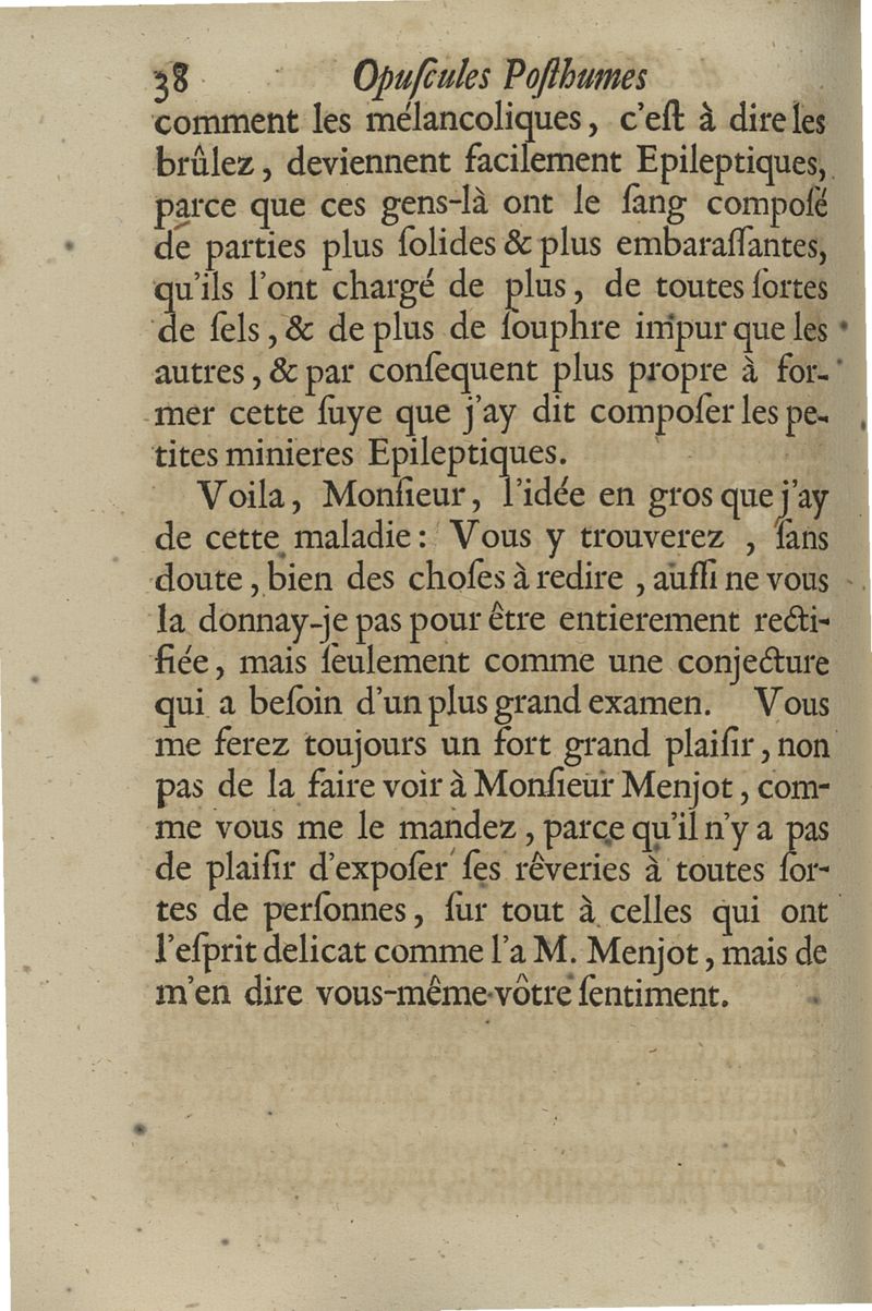 Opuscules posthumes...contenant des discours & des lettres sur sivers sujets, tant de physique & de médecine,...