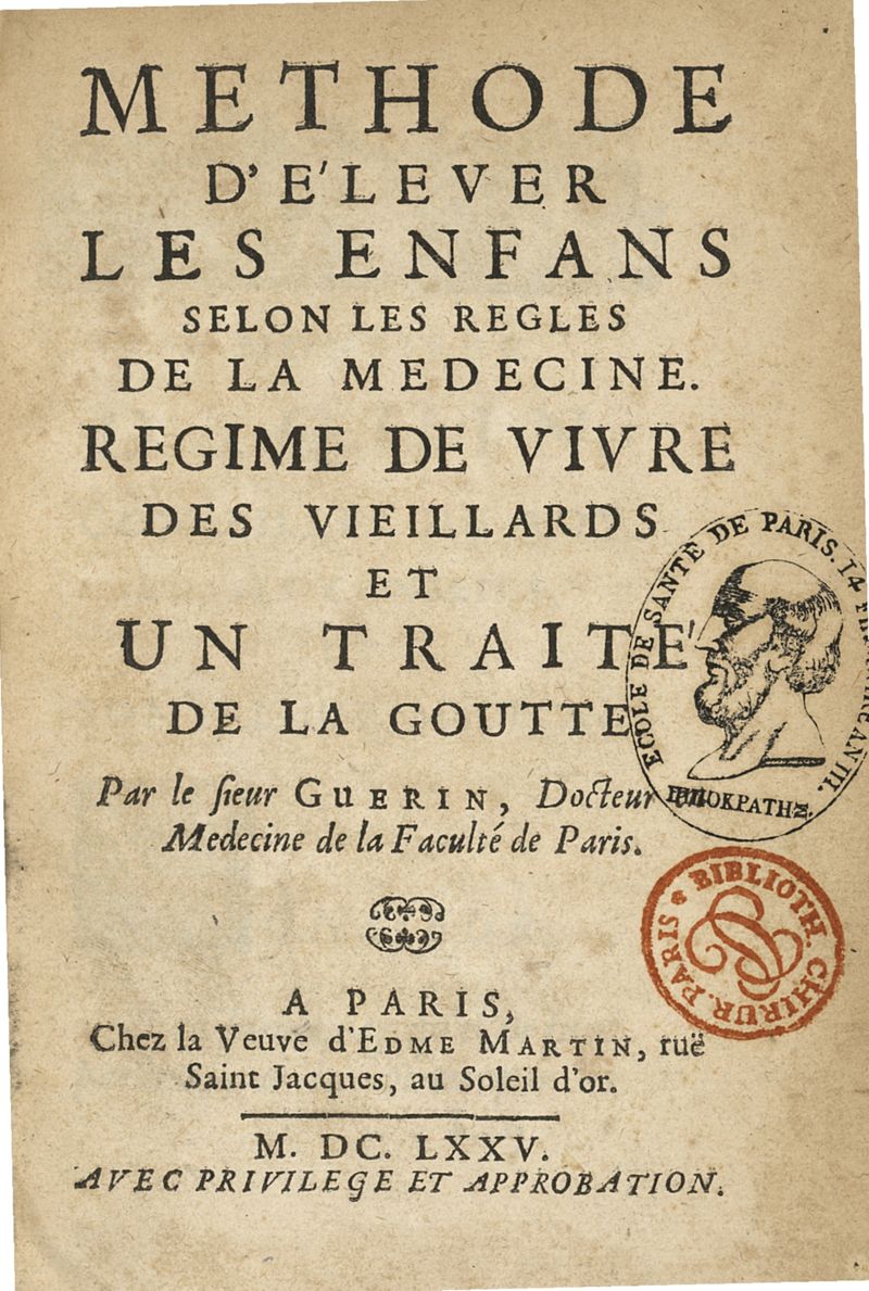 Methode d'élever les enfans selon les regles de la medecine. Regime de vivre des vieillards et un traitte de la goutte