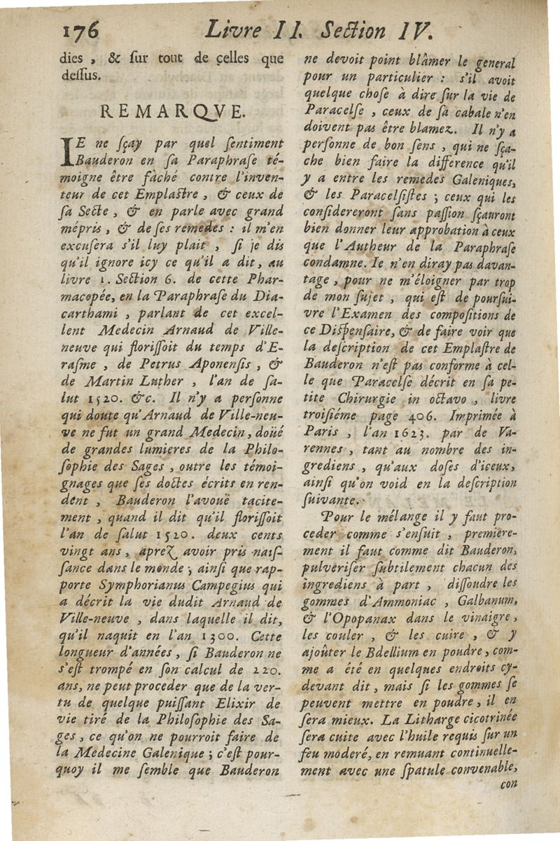 La Pharmacopée de Bauderon, revvë, et exactement corrigée en plus de treize cens endroits, des fautes qui s'étoient glissées dans les precedentes editions. et de nouveau augmentée de plusieurs remarques fort utiles, tant sur la theriaque...par François Verny. Derniere edition