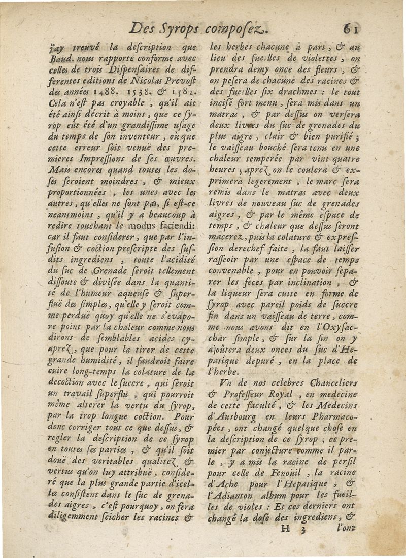 La Pharmacopée de Bauderon, revvë, et exactement corrigée en plus de treize cens endroits, des fautes qui s'étoient glissées dans les precedentes editions. et de nouveau augmentée de plusieurs remarques fort utiles, tant sur la theriaque...par François Verny. Derniere edition