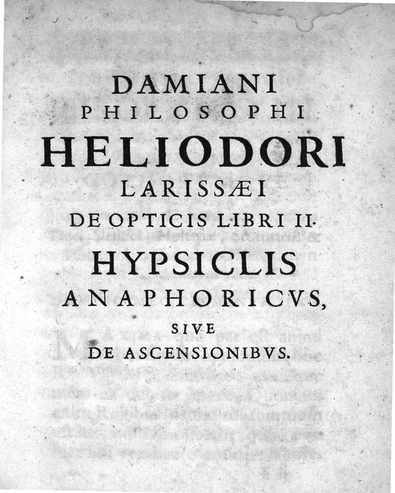 Damiani Philosophi Heliodori Larissæi De Opticis Libri II : Nunc primum editi, et Animaduersionibus illustrati Ab Erasmio Bartholino Casp. Filio