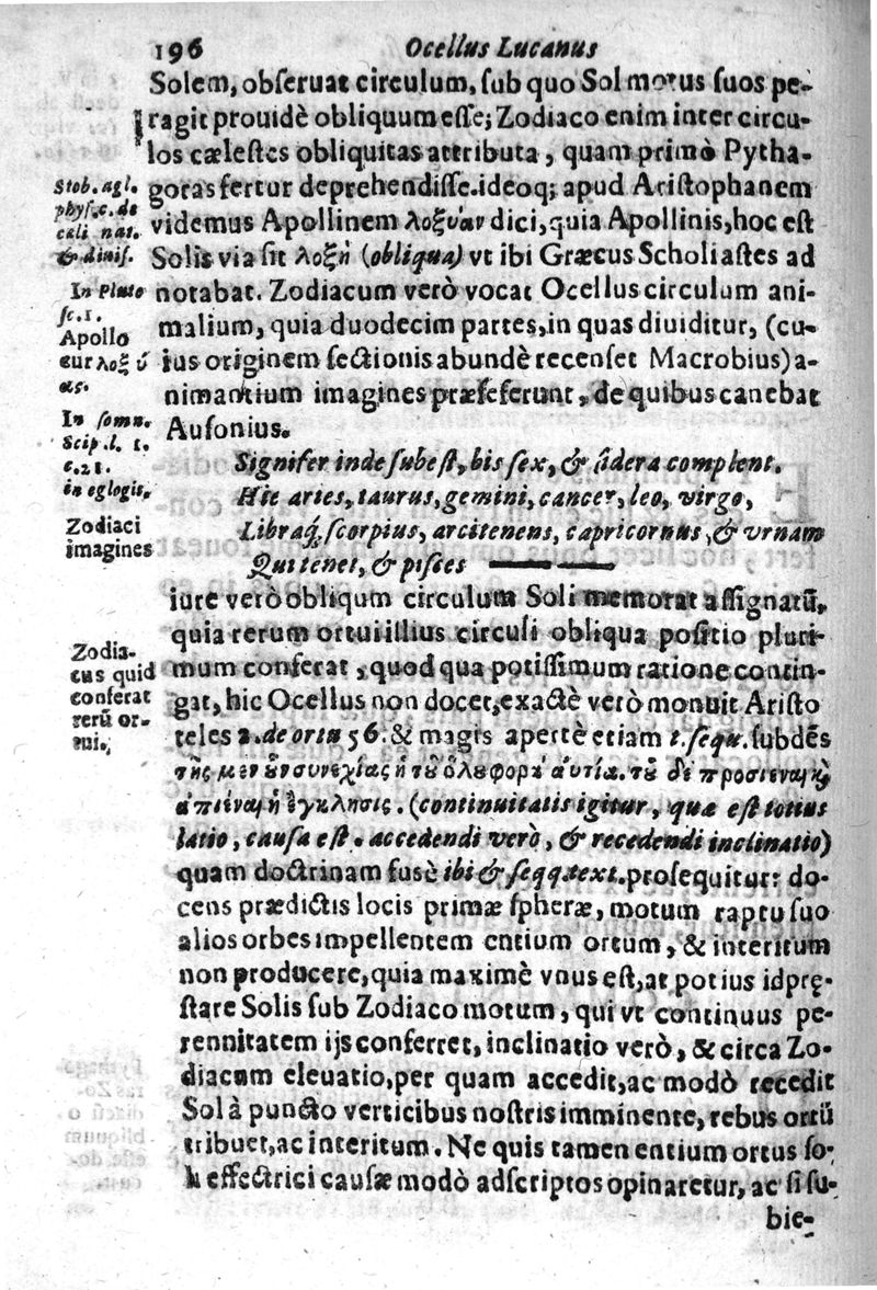 Okellos o Leukanos philosophos... Ocellus Lucanus philosophus De vniversi natura textum è Graeco in Latinum transtulit, collatisque multis exemplaribus etiam M.SS. emendauit, paraphrasi, & commentario illustrauit Carolus Emmanuel Vizzanius ... Pars physica