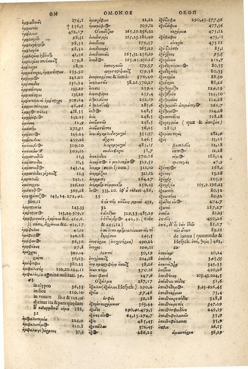 Iouliou Polydeukous Onomastikon en bibliois deka. Iulii Pollucis Onomasticon, decem libris constans : e MSS. codd. Bibliothecarum Palatinae atque Augustanae; variis item doctorum virorum lucubrationibus quana fieri potuit diligentia emendatum ; suppletum quoq[ue] nonnullibi, & illustratum ; adiecta interpretatio Latine Rodolphi Gualtheri, locis quamplurimis melior facta : indices item noui prioribus locupletiores ; & notæ studio atque operâ Wolfgangi Seberi Sulani.